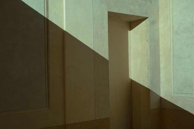 Se i “Bianchi” portano l’osservatore, attraverso distese di neve, dal visibile reale all’invisibile astratto, i “Chiari” (“Silenzi” e “Marine”) rendono il tempo lungo della fotografia, dove ogni intento descrittivo lascia campo all’introspezione, mentre le “Stanze”, attraverso tagli di luce e prospettive di interni, parlano di attese e abbandoni, così come i “Notturni” di matrice hopperiana, che rivendicano il valore della solitudine, e le “Persone in pausa”, in attesa della prima battuta, tra teatro e memoria. Infine la geometria, presente nel “Paesaggio urbano” con contrappunti taglienti di luce. Tra le anticipazioni, alcune fotografie della serie “Wabisabi” che, guardando all’imperfezione come valore, registra piccole lacerazioni e fratture, ed alcuni “Still life”, tra colori, riflessi e trasparenze.