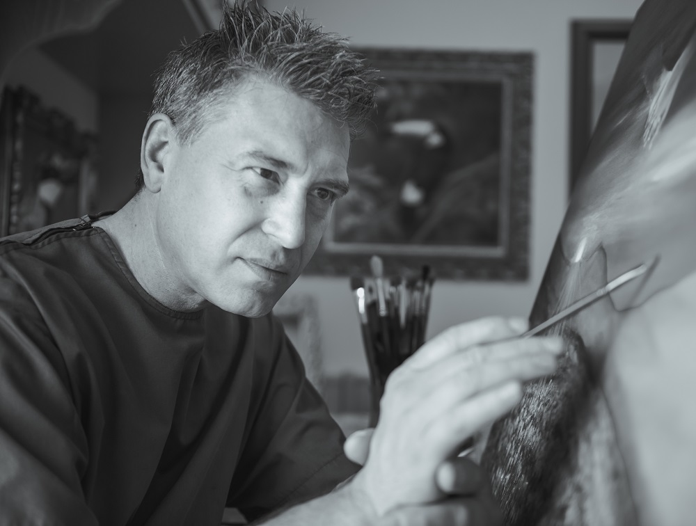 Quadro simbolo dell’esposizione è “L’Arcangelo Michele” (olio su tela, Agata bianca, legno fossile silicizzato e Acquamarina - 2024 - 70X70), un’opera che fonde simbolismo e visioni allegoriche in una scena dinamica e potente.