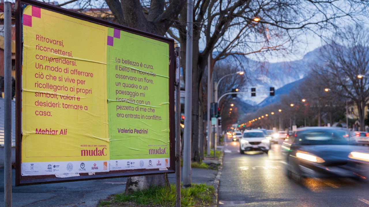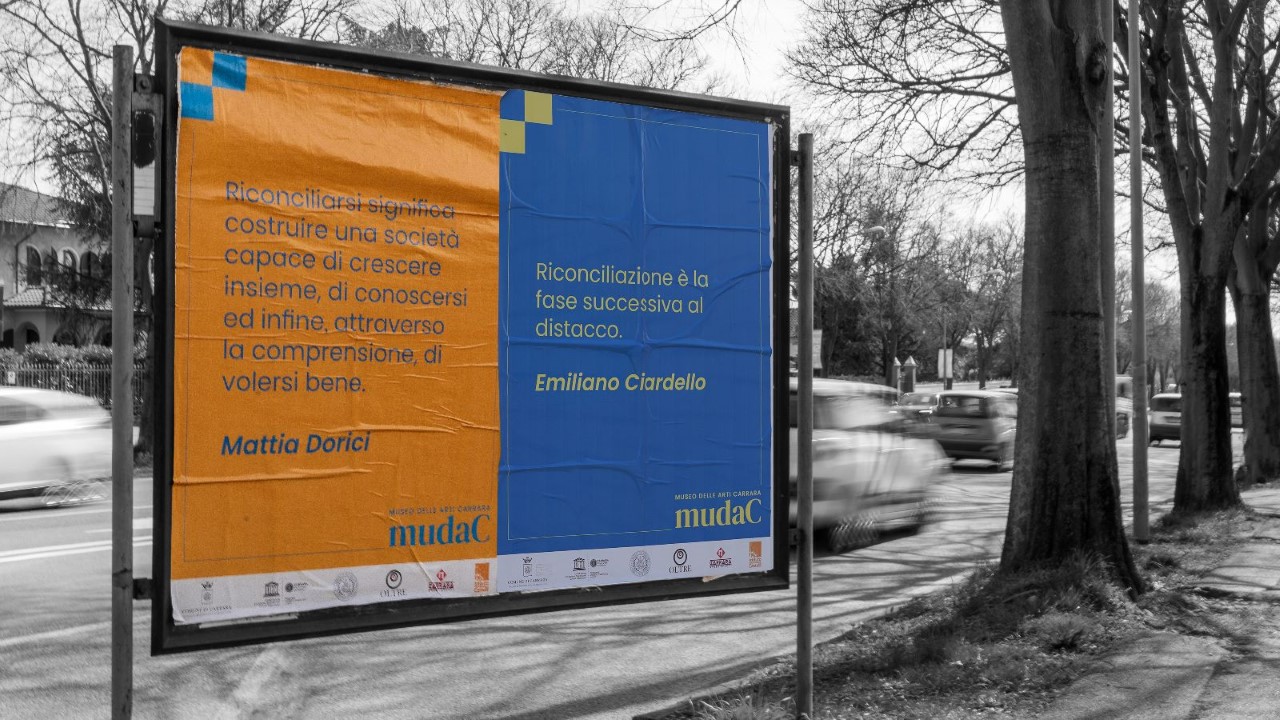 Un’altra iniziativa del mudaC, che ha accompagnato il progetto nei mesi di preparazione, si è realizzata su scala urbana, con l’affissione di manifesti pubblici che riportano alcune frasi raccolte tra i partecipanti, ai quali è stato chiesto di esprimere la propria idea sul tema della riconciliazione: le frasi poi sono state stampate su manifesti 100x140 cm ed esposte in vari punti della città di Carrara come risultato di un pensiero collettivo che trova spazio attraverso l’azione del museo.