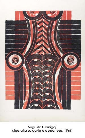 La finezza delle opere esposte testimonia l’inesauribile voglia di sperimentare e la sensibilità per i linguaggi delle avanguardie, che caratterizzarono tutta la vicenda artistica e creativa di Cernigoj fin dagli esordi, quando, dopo aver studiato alla Gewerbwschule di Trieste (attuale Istituto “Volta”), nel ’22, frequentava l’Accademia di Belle Arti a Monaco, fucina di molti importanti artisti triestini, dove si stavano affinando anche geni dell’avanguardia quali Kandinskij e Klee. Non solo, ma nel ’24, l’artista fu presente per sei mesi anche al Bauhaus, la cui didattica si fondava sul distacco dalla tradizione e nel cui archivio di Dessau sono ancora conservati i disegni del giovane Augusto, recentemente esposti a Hildesheim per interessamento del figlio Teodoro, instancabile promotore, fino all’ultimo, della memoria artistica del padre. Che fu il più significativo rappresentante del costruttivismo triestino e la voce più importante di tale movimento in ambito italiano, nonché affabile, vivace, curioso sperimentatore di tecniche e tendenze diverse, dal postcubismo alla nuova oggettività e all’espressionismo, dal new dada al neorealismo, dall’informale alla pittura gestuale: una creatività poliedrica, di cui la mostra triestina offre una testimonianza poetica e coerente con opere ricercate come i temi africani degli anni trenta e punte di diamante quali Automatico (1969), realizzato attraverso matrici a più colori, Simultanea, acquaforte a bulino (1974), e una particolare xilografia incisa su carta giapponese (1969).