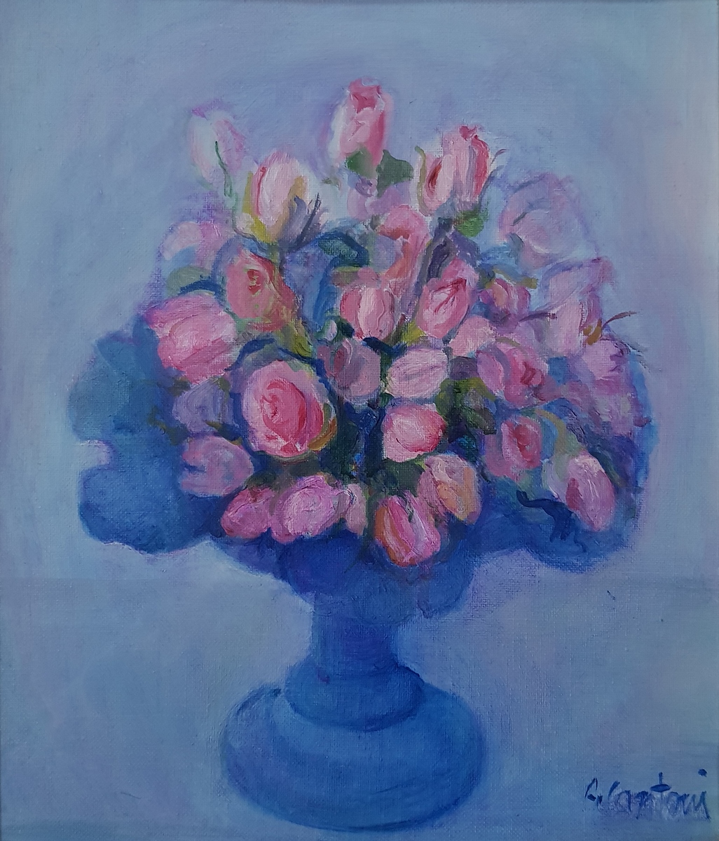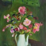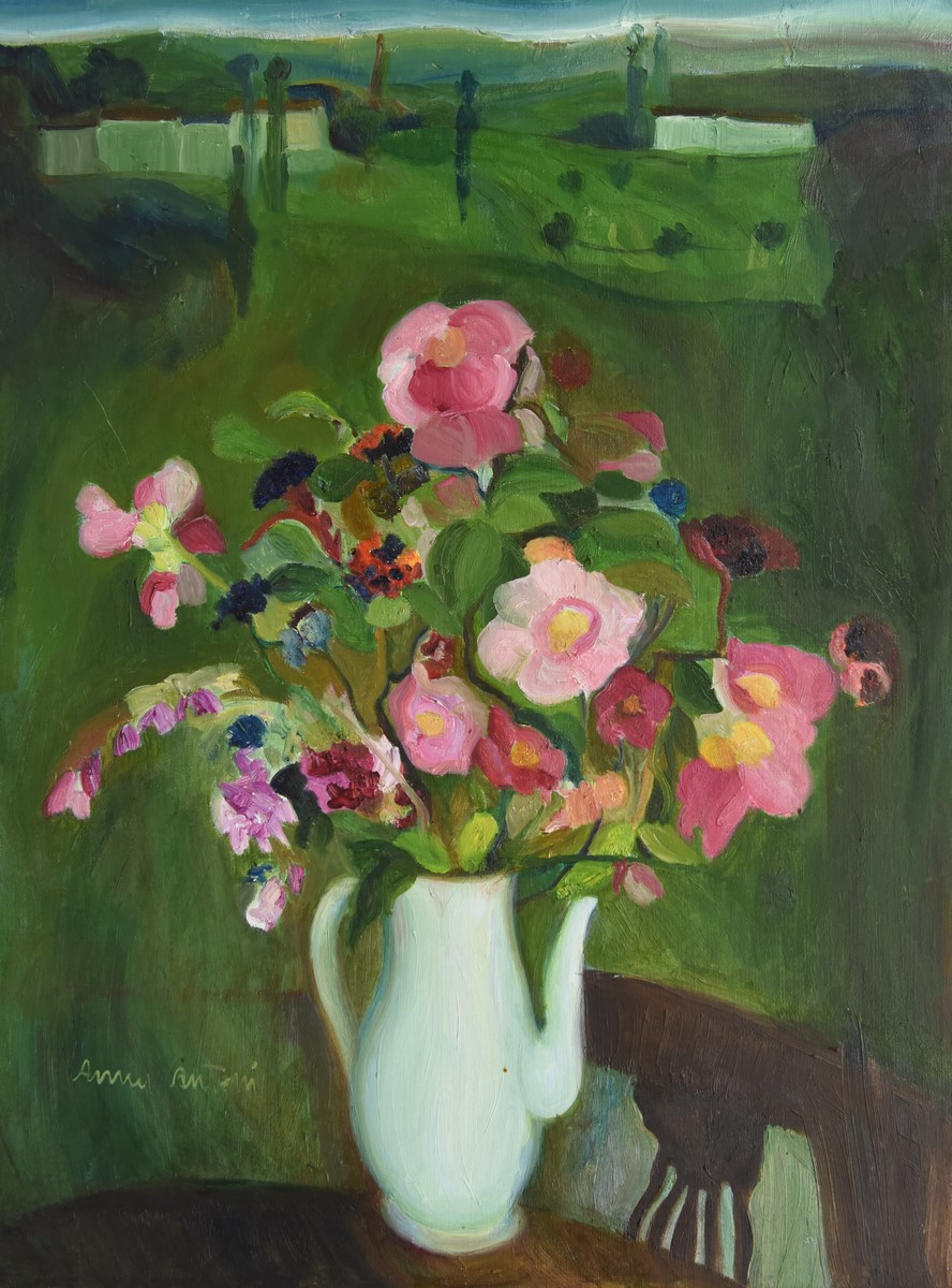 Il percorso si apre con una stampa in cui, orgogliosamente, l’artista annota una frase di Giorgio Morandi riferita a quest’opera, a testimoniare il debito di riconoscenza verso il suo primo, grande maestro. Negli oli e negli acquerelli invece si riconosce l’impronta dell’altro, importante, maestro: Virgilio Guidi, da cui mutua il gusto per il colore e la luce. I fiori, le nature morte, alcuni scorci del centro storico, colti nella cromia vivace di una giornata estiva o nella malinconica bellezza di una nevicata, alludono ad un lessico familiare che risuona non solo nella sua poetica, ma anche nel sentire di tanti suoi estimatori che riconoscevano in quella pittura il proprio mondo. Interni domestici dunque, e paesaggi d’affezione delicati, elegantemente borghesi ma senza essere stereotipati; l’artista anzi cerca una via sempre più sintetica, che attraverso l’acquerello raggiunge la perfetta interpretazione stilistica.