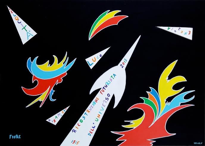 L’esposizione si riallaccia idealmente al manifesto futurista “Ricostruzione futurista dell’Universo”, ricorrendo, in questo 2015, il centenario dalla sua pubblicazione, e presenta opere e “operine” di artisti che di quella stagione furono protagonisti, primari, comprimari e comparse della grande avventura futurista che si sono avvicendati temporalmente al Movimento fino alla sua conclusione storica nel 1944. In realtà, i futuristi ancora attivi continuarono a operare, seppure talvolta con diverse modalità espressive: alcuni perseverando nei linguaggi aeropittorico o meccanicistico, altri superandoli in senso spazialista. Il pittore Antonio Fiore, attivo dalla fine degli anni Sessanta, che aveva avuto rapporti con gli ultimi futuristi: da Monachesi a Cangiullo, da Benedetto a Peruzzi, alle figlie di Giacomo Balla, ha raccolto quella eredità attualizzandola in chiave modernamente cosmopittura.