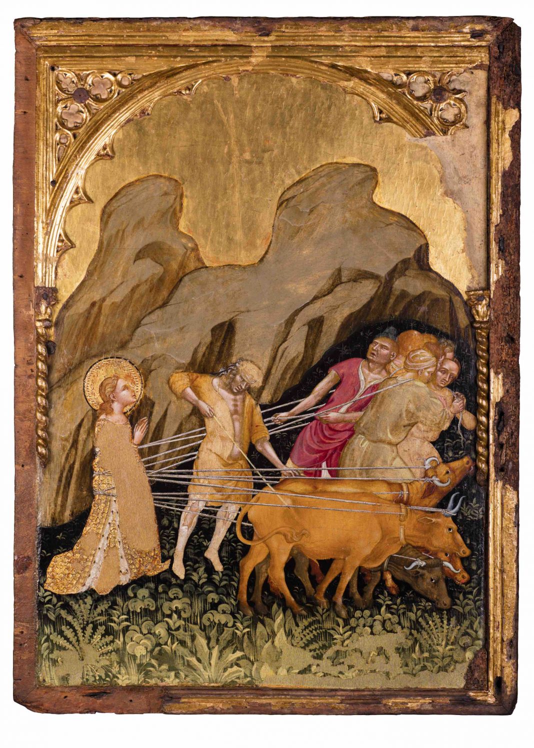 A Senigallia la mostra si arricchisce, arrivando a 40 opere esposte e in particolare, per la prima volta dopo il sisma, viene ricomposto l’intero ciclo di Jacobello del Fiore con le Scene della vita di Santa Lucia proveniente dal Palazzo dei Priori di Fermo, presentato parzialmente nelle precedenti tappe. Si tratta di otto tavole realizzate tra il 1420 e il 1425 raffiguranti le storie di Santa Lucia dove la rappresentazione segue puntualmente il testo della Leggenda Aurea, importante fonte agiografica di Jacopo da Varazze. Partendo da Lucia, nobile siracusana, che si reca sulla tomba di Sant’Agata con la madre malata sperando di riceverne la guarigione, fino al violento martirio subito dalla giovane per essersi rifiutata di negare la fede cristiana, ogni scena è realizzata con grande dovizia di particolari e con un’attenzione alle strutture architettoniche che testimoniano l’adesione dell’artista al gotico cortese in voga nell’Italia Settentrionale, uno stile dove emerge la forza espressiva dei volti tipico di Jacobello.