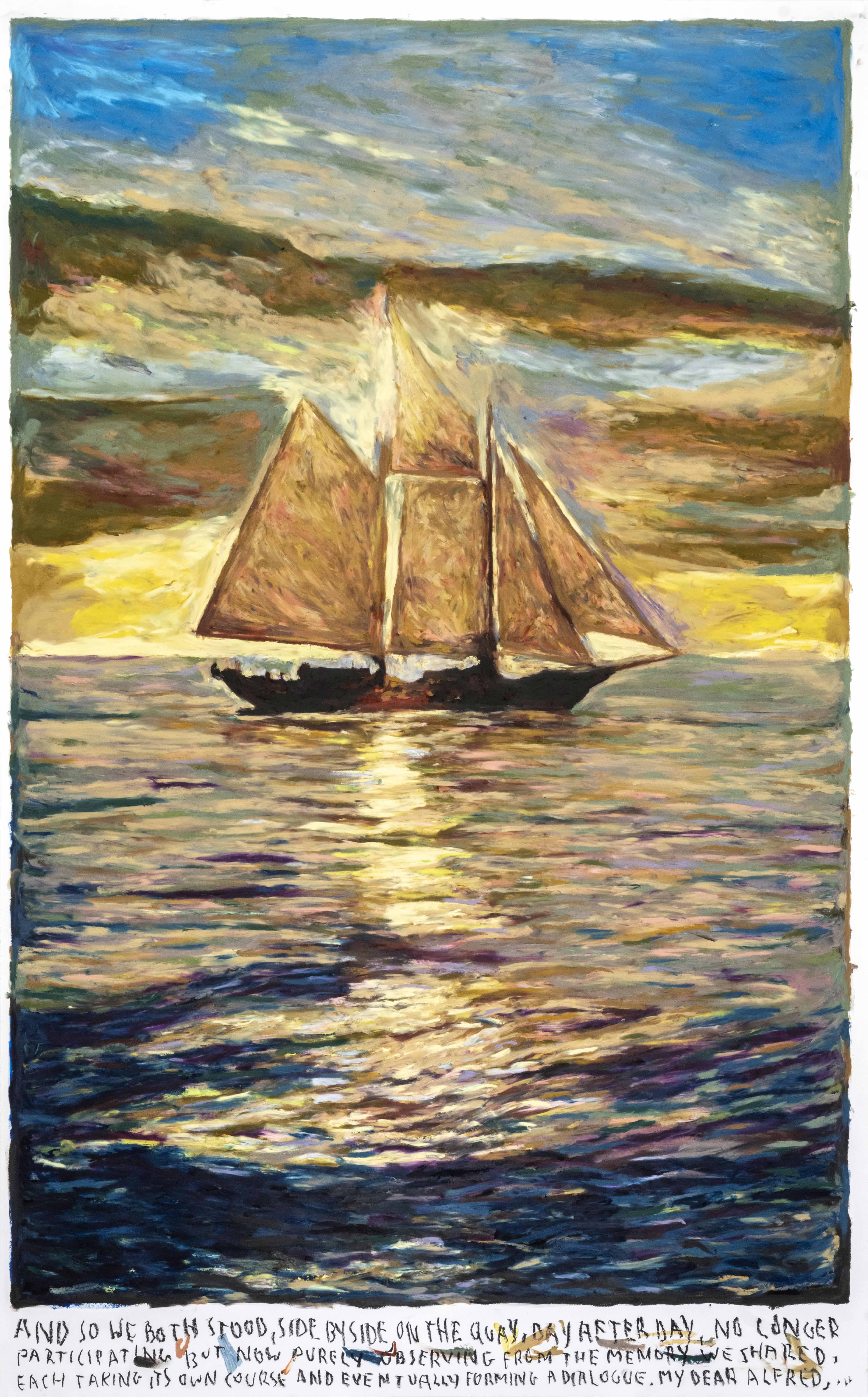 “I am done singing about the past” è la prima personale dell’artista in Italia con una nuova serie di disegni a carboncino, matita colorata e pastello a olio dove Van de Velde codifica il mondo attraverso una raccolta di immagini e le combina nella narrazione della sua autobiografia fittizia.