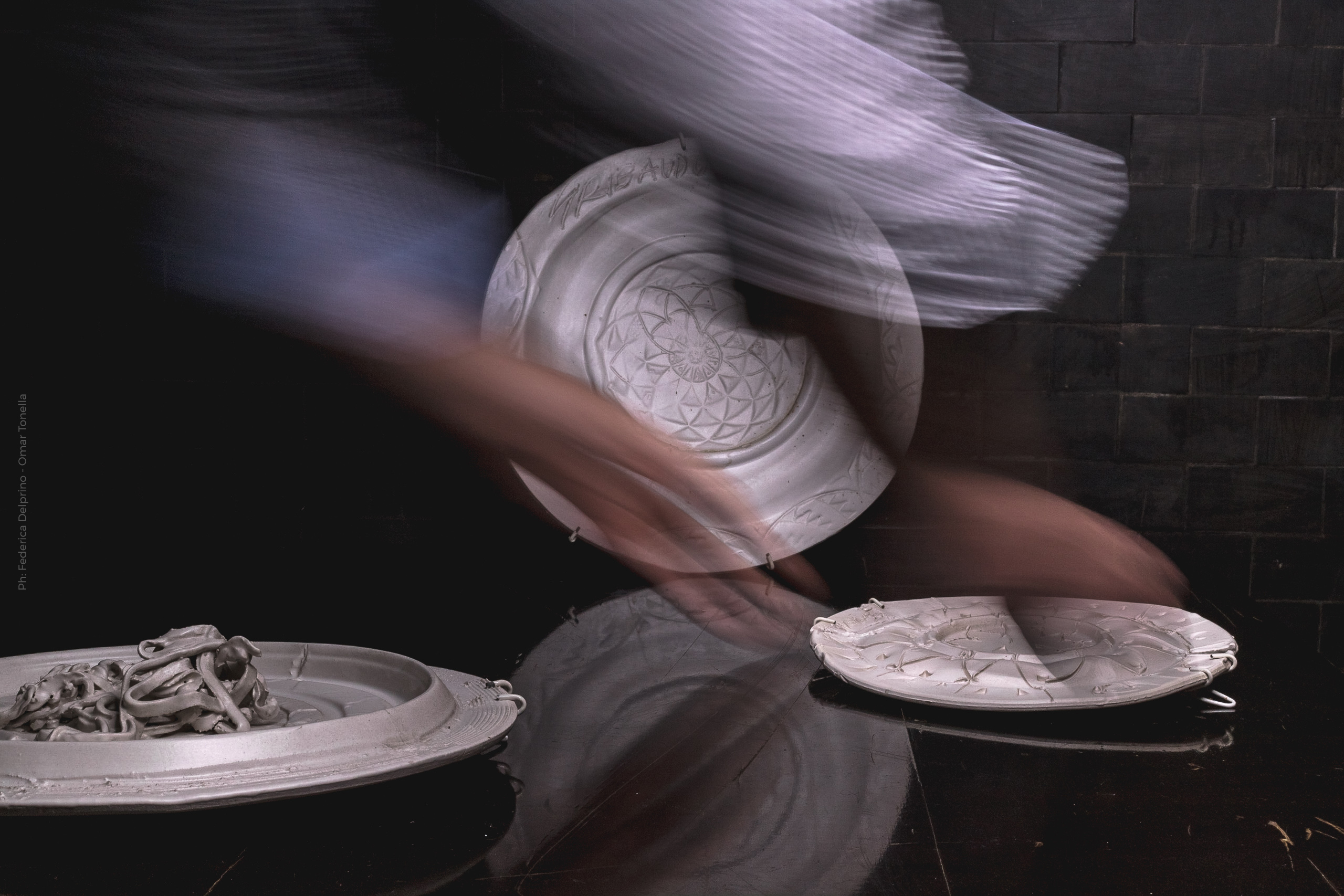 La mostra segna dunque un ritorno carico di significati tanto per l’artista quanto per la sede che lo accoglie. Nello spazio intimo del salotto di Jorn, sono allestite opere inedite di Gribaudo in ceramica: nate sulla scia delle altre ricerche monocrome condotte a partire dai Flani e dai Logogrifi, esse rappresentano la parte meno conosciuta della ricerca artistica del maestro torinese. Insieme ad altre opere coeve, degli anni Settanta e Ottanta, i piatti in ceramica entrano in dialogo con il mondo tutt’altro che monocromo di Asger Jorn, riattivando tra i due protagonisti del Novecento un dialogo. L’esposizione si completa con una sezione di documenti, foto e libri rari, che restituiscono in maniera tangibile il rapporto professionale e d’amicizia tra i due artisti.