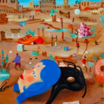 La sua capacità di creare spazi che invitano alla contemplazione e al riposo è un segno di grande sensibilità e maestria. La combinazione di elementi barocchi e romantici, insieme a suggestioni surrealiste, arricchisce le sue opere di una complessità che stimola la mente e l’anima. L’uso di riferimenti storici, come Tiepolo e le pompeiane, non solo omaggia la tradizione artistica, ma crea anche un dialogo tra passato e presente, invitando lo spettatore a esplorare le connessioni temporali e culturali. Il “meticoloso pseudo graffito style” descritto da Alan Jones aggiunge una dimensione contemporanea alle sue opere, suggerendo una riflessione sulla superficie e sulla profondità, sull’apparenza e la sostanza.