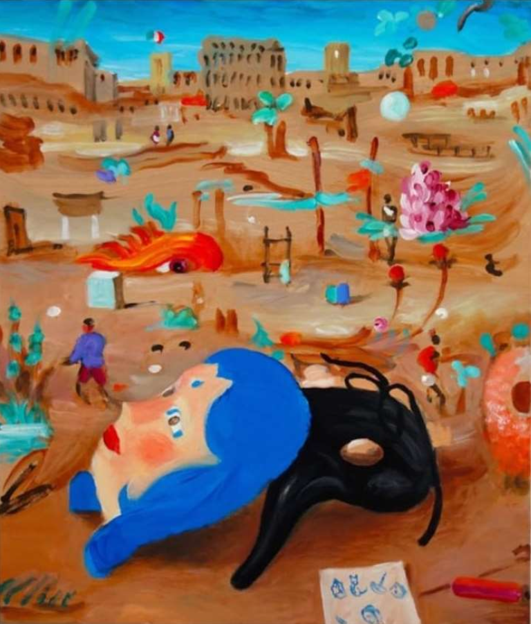 La sua capacità di creare spazi che invitano alla contemplazione e al riposo è un segno di grande sensibilità e maestria. La combinazione di elementi barocchi e romantici, insieme a suggestioni surrealiste, arricchisce le sue opere di una complessità che stimola la mente e l’anima. L’uso di riferimenti storici, come Tiepolo e le pompeiane, non solo omaggia la tradizione artistica, ma crea anche un dialogo tra passato e presente, invitando lo spettatore a esplorare le connessioni temporali e culturali. Il “meticoloso pseudo graffito style” descritto da Alan Jones aggiunge una dimensione contemporanea alle sue opere, suggerendo una riflessione sulla superficie e sulla profondità, sull’apparenza e la sostanza.