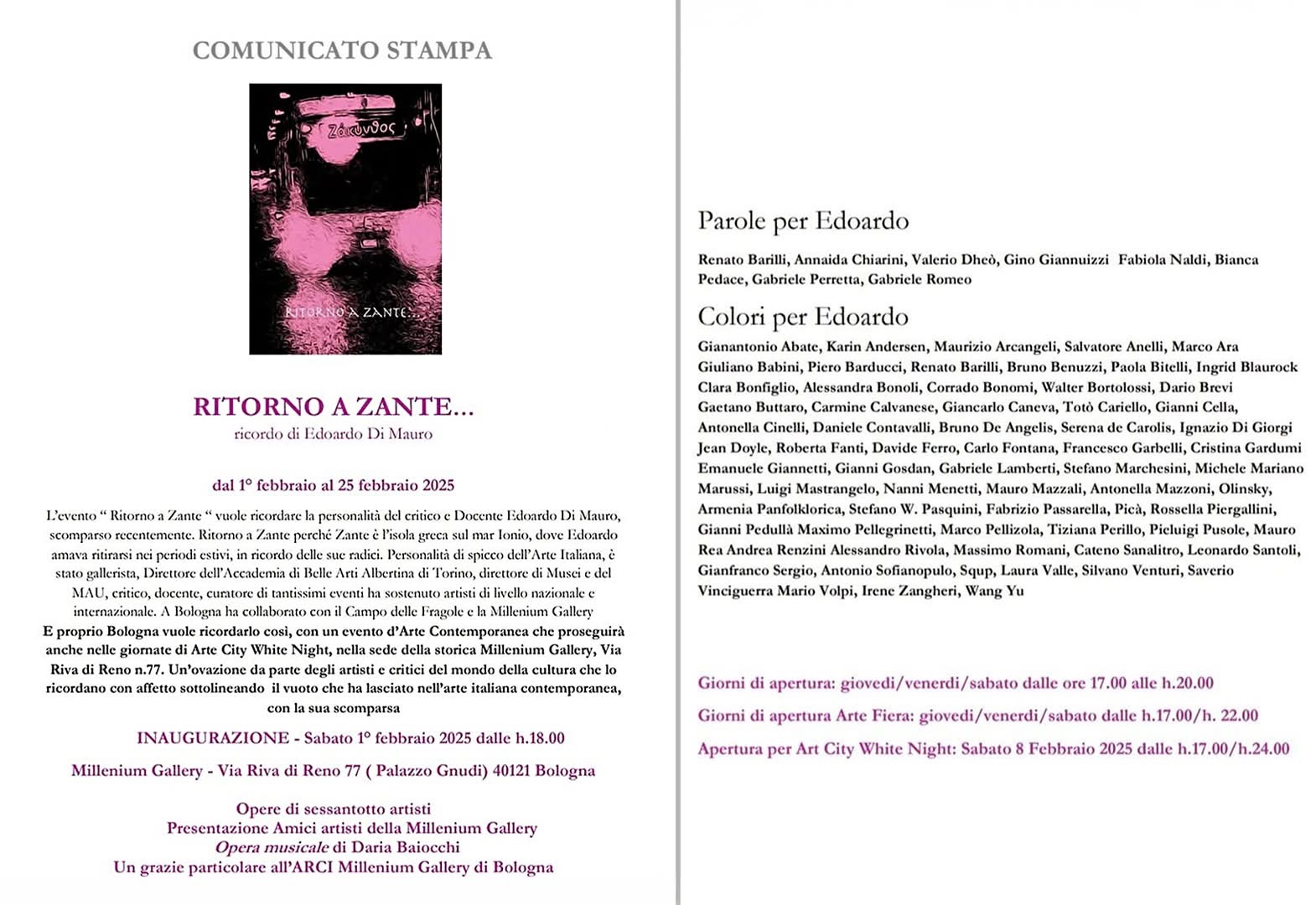 Parole per Edoardo:Renato Barilli, Annaida Chiarini, Valerio Dheò, G. Giannuizzi Fabiola Naldi, Bianca Pedace,Gabriele Perretta, Gabriele Romeo. Opere esposte di 68 artisti