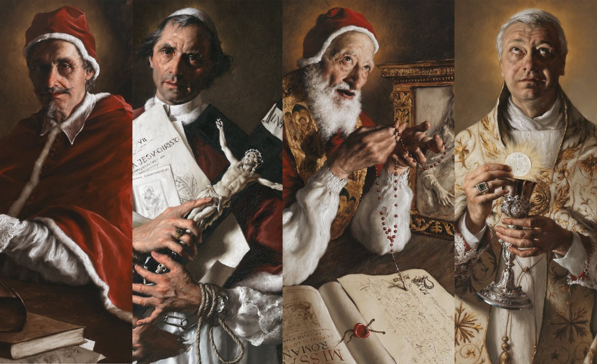 Undici grandi ritratti di Giovanni Gasparro dialogano con altrettante opere d’arte antica di altissima qualità – calici, reliquiari, pianete, ecc. – appartenute ai pontefici ritratti. Pittura, arti applicate e storia della chiesa in un mix affascinante ed inedito.