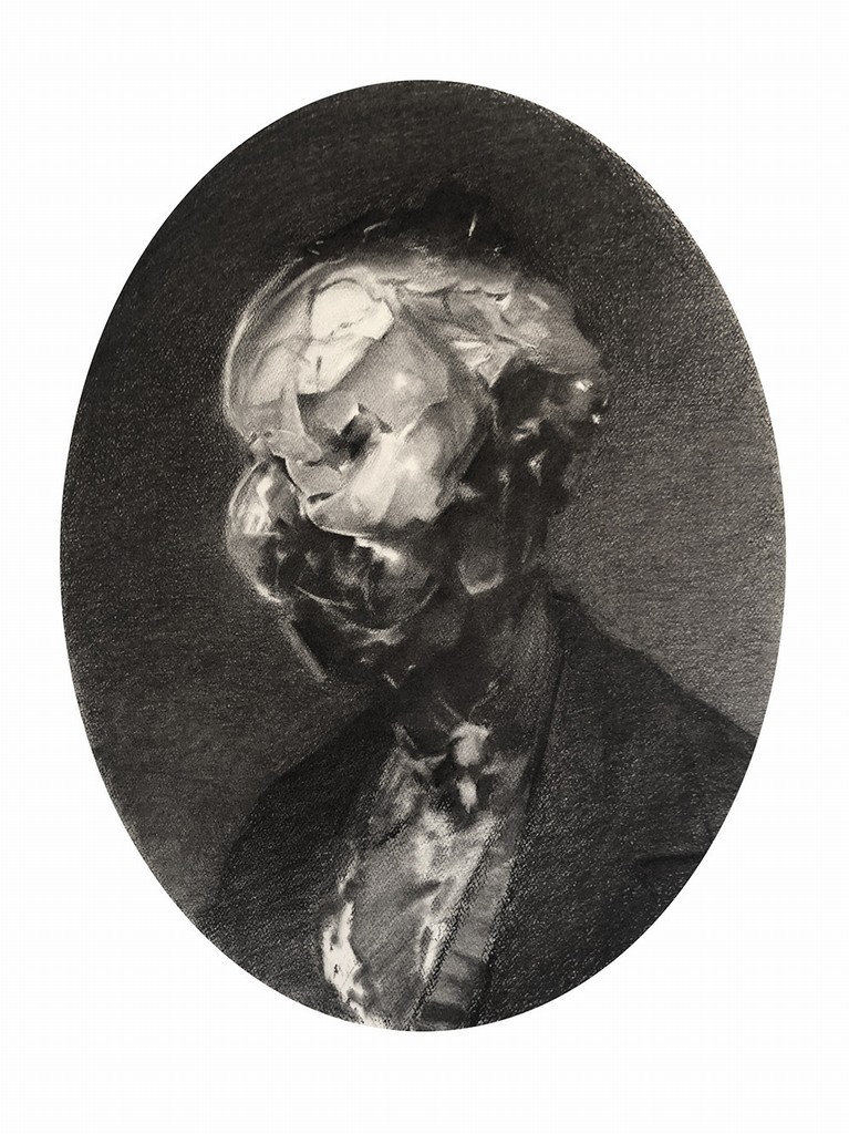Il collage come ponte tra passato e futuro, attimo di passaggio spaziotemporale, è il senso più profondo di questa tecnica, come concepita anche da Nick Devereux (1979). Per lui, artista nato a Panama e oggi residente a Londra, del tutto dedito al disegno, il collage ha sempre avuto il significato di nuova nascita. Nei momenti di crisi ha rappresentato la linfa creativa, lo spunto per una nuova ricerca di significato. Per Devereux il collage significa ripartire per una nuova strada, coerente con quella già percorsa. Dopo aver molto utilizzato questa tecnica in passato, l’artista si è appropriato di questa tecnica al punto da trasformarla in un modo di pensare su carta, superando l’uso della colla. I suoi lavori odierni, infatti, non presentano niente di incollato, ma vi ritroviamo la tipica sovrapposizione di un’immagine sull’altra, realizzata però disegnando con il pastello. Il collage è quindi presente solo come procedimento mentale che posiziona i disegni delle sue sculture all’interno di studi di artisti, presi da scene di film. Gli interessa indagare il modo con cui la mentalità borghese della seconda metà del secolo scorso riproduce lo stereotipo dell’artista bohèmien e sregolato. Nello specifico, Devereux prende spunto dal film satirico inglese The Rebel (Call me a Genius nella versione americana), commedia del 1961 con l’attore molto popolare Tony Hancock. Devereux fotografa l’ambientazione dello studio del pittore protagonista della pellicola, nel cuore del quartiere di Montmartre. Su questa fotografia stampata, poi sovrappone come in un collage ideale, il disegno descrittivo delle proprie sculture in legno che Devereux utilizza solo come maquette da inserire visivamente per poi smontarle. Il contenuto reale del suo studio viene riversato sul set stereotipato del film, esasperando il contrasto tra artificio e realtà artistica in una sorta di scatola cinese di significati. Per la mostra, l’artista costruisce una sorta di grande installazione con assi di legno in un cui convivono sculture di cocci di vetro che si ritrovano protagonisti dei suoi disegni appesi e pannelli in tulle, da lui tinto a mano dai molteplici effetti cromatici. L’artista dà il via così ad una seconda sovrapposizione, tra il luogo di creazione artistica, romantico e romanzato delle commedie, da lui riprodotto nei grandi disegni e lo scenario circostante ricreato secondo la sua prassi di lavoro quotidiana. Questo allestimento, appositamente studiato per schermire e colorare la luce proveniente dalle grandi finestre del ventiseiesimo piano del Bosco Verticale mette in scena l’alternarsi dei suoi collages ideali e di quelli reali degli artisti italiani del secolo scorso, in un prolifica stratificazione di sguardi e di riferimenti.