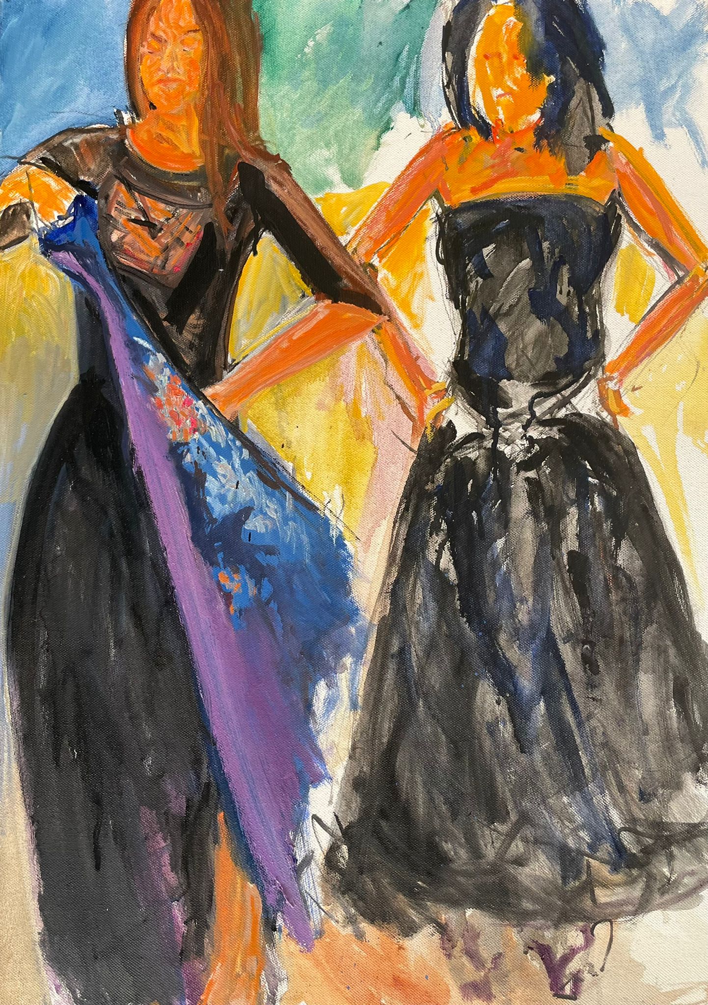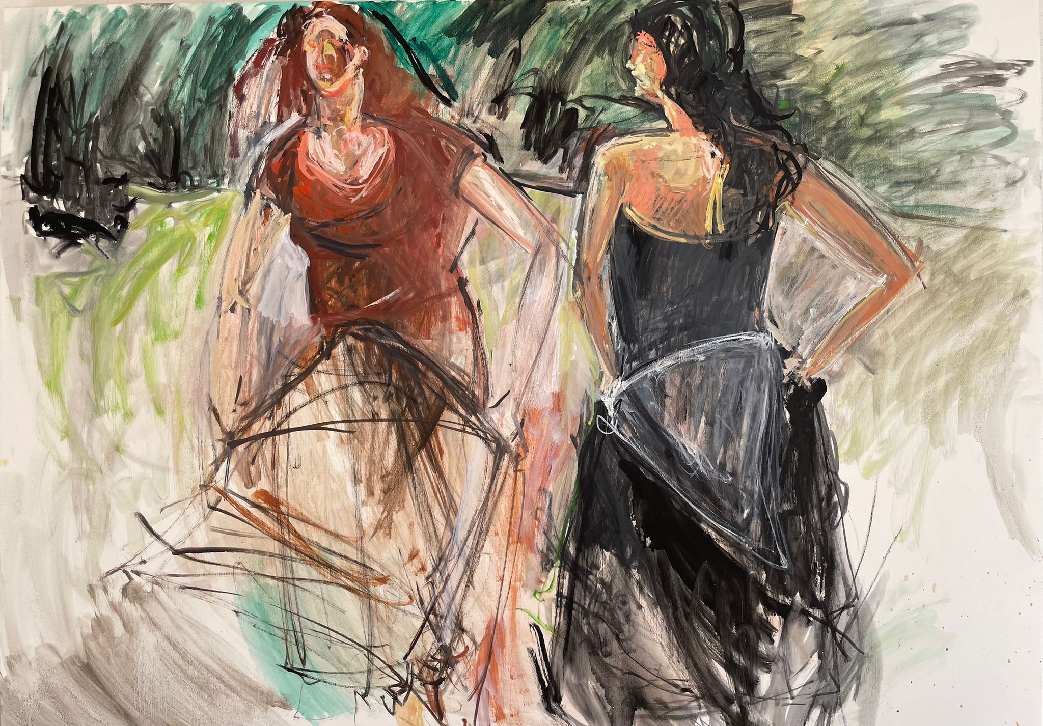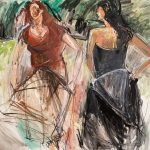 Il gesto pittorico insegue il ritmo della danza…così accade che sulle tele si riannodino le fila di una storia antica espressione di identità e cultura, passione e dolore, nostalgia e disincanto