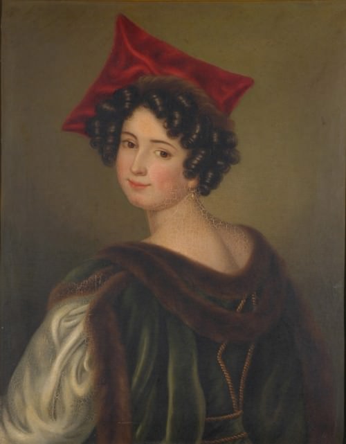 La mostra presenta alcuni capolavori del Sette ed Ottocento, da Giacomo Lazari e Rosalba Carriera, Pier Luigi Crespi e Domenico Pellegrini ad altri autori accademici e non, sino a Maggiotto e Francesco Hayez, tutti di proprietà delle Gallerie dell’Accademia ed eseguiti con diverse tecniche: pittura, scultura, incisione e disegno. Sono opere particolarmente espressive dell’identità e dignità dell’artista, normalmente non fruibili dal pubblico sia per le attuali carenze di spazio espositivo sia perché concessi in deposito esterno ad altri musei o istituzioni pubbliche. Dei temi proposti, l’Ottocento, non era mai stato realizzato a Venezia e finora poco noto e poco apprezzato. In mostra alcune opere visibili al grande pubblico per la prima volta, come il brioso, quasi sbarazzino, autoritratto della baronessa Emilia Riegel, qui riportato.