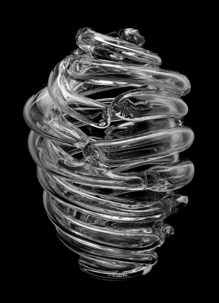 L’artista Ritsue Mishima (1962) si ispira alle forme della natura, ai riflessi di luce: i suoi vetri sono trasparenti, incolori, trasmettono una sensazione di purezza e luminosità, catturano ed espandono la luce e i colori dell’ambiente circostante.