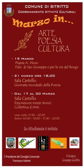 in… Arte, Poesia, Cultura” e organizzate dall’Assessore, Francesco Valerio del Coordinamento