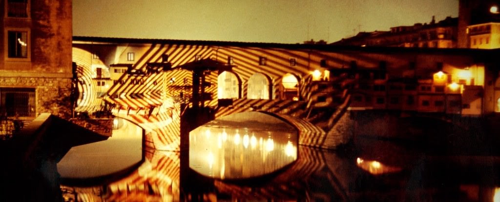 I viaggi nel continente nordamericano, compiuti da Carlo Caldini e Mario Preti, hanno consentito all’originario gruppo 1999 (poi trasformatosi in 9999) di accrescere la propria educazione architettonica e culturale attraverso la conoscenza diretta dei fenomeni in atto, tra i quali la controcultura californiana, gli esperimenti di Paolo Soleri in Arizona, l’Expo di Montreal del 1967, e le visite alle metropoli di Los Angeles e Las Vegas. I 9999 studiano le teorie di Marshall McLuhan e le sperimentano nello spazio architettonico, come durante l’Happening su Ponte Vecchio del 25 settembre 1968: sulle superfici murarie vengono proiettate immagini di astronauti, segni e forme che ridefiniscono, attraverso un codice visivo, la percezione del monumento. E poi la discoteca Space Electronic, inaugurata nel 1969, e che è stata sede, fra gli altri, del Living Theatre e della sua performance Paradise Now, viene ideata da Caldini e Fiumi che ne assumono anche la gestione.