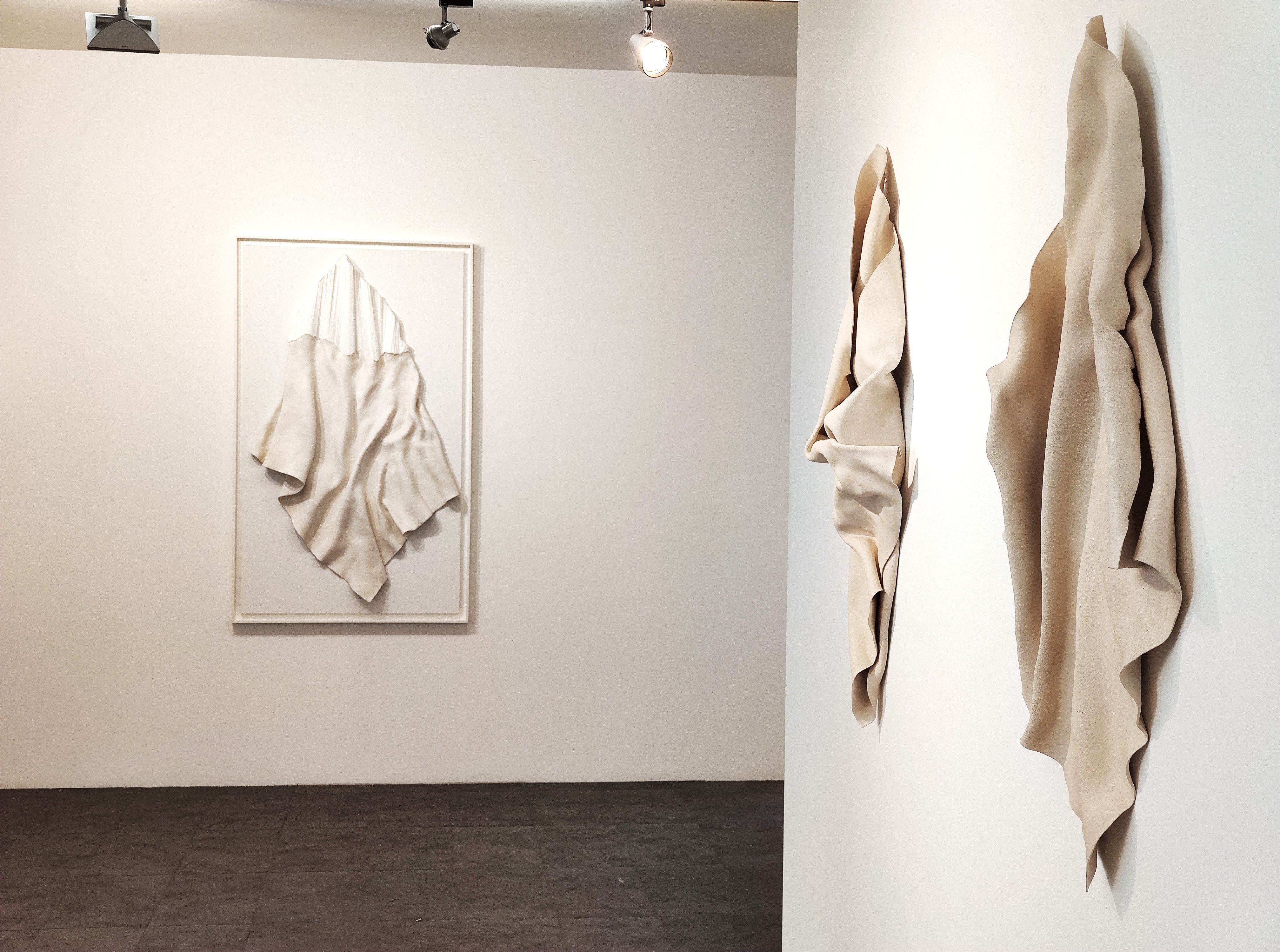 La galleria Progettoarte Elm è lieta di annunciare la mostra “RivoluzionEvoluzione” dedicata a due giovani scultrici: Renata e Cristina Cosi; che si terrà nei nostri spazi a Milano dal 26 ottobre al 6 dicembre. Lavorando in stretta simbiosi, a quattro mani, in una inedita e originale visione comunitaria, le sorelle Cosi modellano soprattutto il grès, un materiale ceramico a pasta dura, ottenuto per cottura dell’argilla, a volte mescolata con piccole quantità di altri elementi come il ferro, il silice, il calcare. Il risultato è una serie variegata di forme molto ondulate, di color avorio; forme dove la materia primordiale inizialmente spessa e grezza si assottiglia in veli leggeri, sinuosi, candidi, avvolti di spontaneità e freschezza. Il loro gesto fondamentale è quello alchemico della trasfigurazione: il trasformare una materia dura, immobile, insensibile, in qualcosa di aereo, libero, modellato dal pollice del vento. Una terra che si trasforma in forme ondulate, in tendine, in pieghe, in percorsi elaborati da intense curve che spesso dialogano con la resina, il legno ed il plexiglas. L’umiltà di un semplice foglio, grazie alle loro mani, comincia a muoversi, ad accennare ad increspature, minime vibrazioni, pieni e vuoti che poco a poco diventano piccole e intense onde. La purezza dell’avorio che a volte dialoga con il nero dell’antracite, diventa un breve movimento molto mosso, ondulato, in disegni liberamente equorei. Ondulazioni, frastagliati tremori, un fitto intrecciarsi di concavi e convessi dove la grande tradizione della scultura barocca, da Bernini a Puget, idealmente si riallaccia anche al percorso barocco di Lucio Fontana e Fausto Melotti, come un libero omaggio che le giovani scultrici operano ispirandosi a intimi particolari o piccoli dettagli, idealmente ripresi dai grandi panneggi di una gloriosa, marmorea storia scolpita