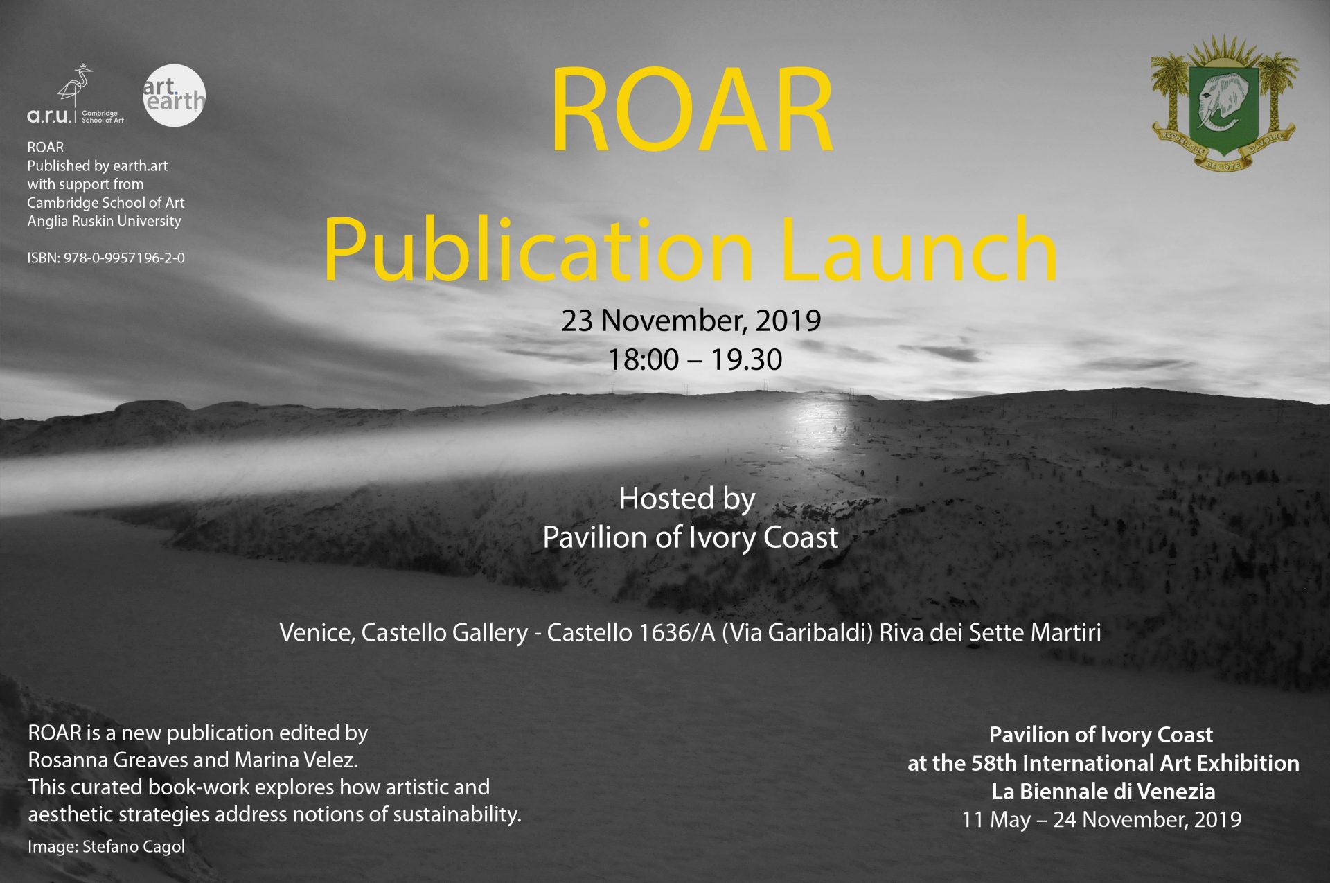ROAR è una nuova pubblicazione a cura di Rosanna Greaves e Marina Velez. Questo libro-lavoro di 270 pagine a cura di Rosanna Greaves e Marina Velez esplora come le strategie artistiche ed estetiche affrontano i concetti di sostenibilità. ROAR ha invitato una selezione di artisti, curatori, scrittori e accademici a rispondere ad ampie questioni riguardanti la sostenibilità, come l'antropocene, l'ecologia, la terra e i confini, i rapporti umani e non umani, le nozioni di lavoro, energia e tempo, e la creazione e distribuzione della conoscenza.