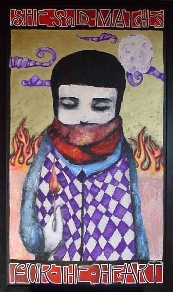 RoBè infatti ha uno stile particolarissimo e “Fiabesco”, non amando la facile caratterizzazione di fumetto, nelle sue opere c’è qualcosa di straordinario, nel vero senso etimologico del termine, quindi oltre all’ordinario. Immagini che vanno dritte al cuore, scritte che indirizzano il fruitore verso il significato dell’opera, a ciò che l’artista vuole raccontare, cornici che custodiscono piccoli segreti, sempre diverse e speciali, dipinti su legno e non su tela, che Robè trova troppo debole e fragile per contenere questa portata di messaggio.