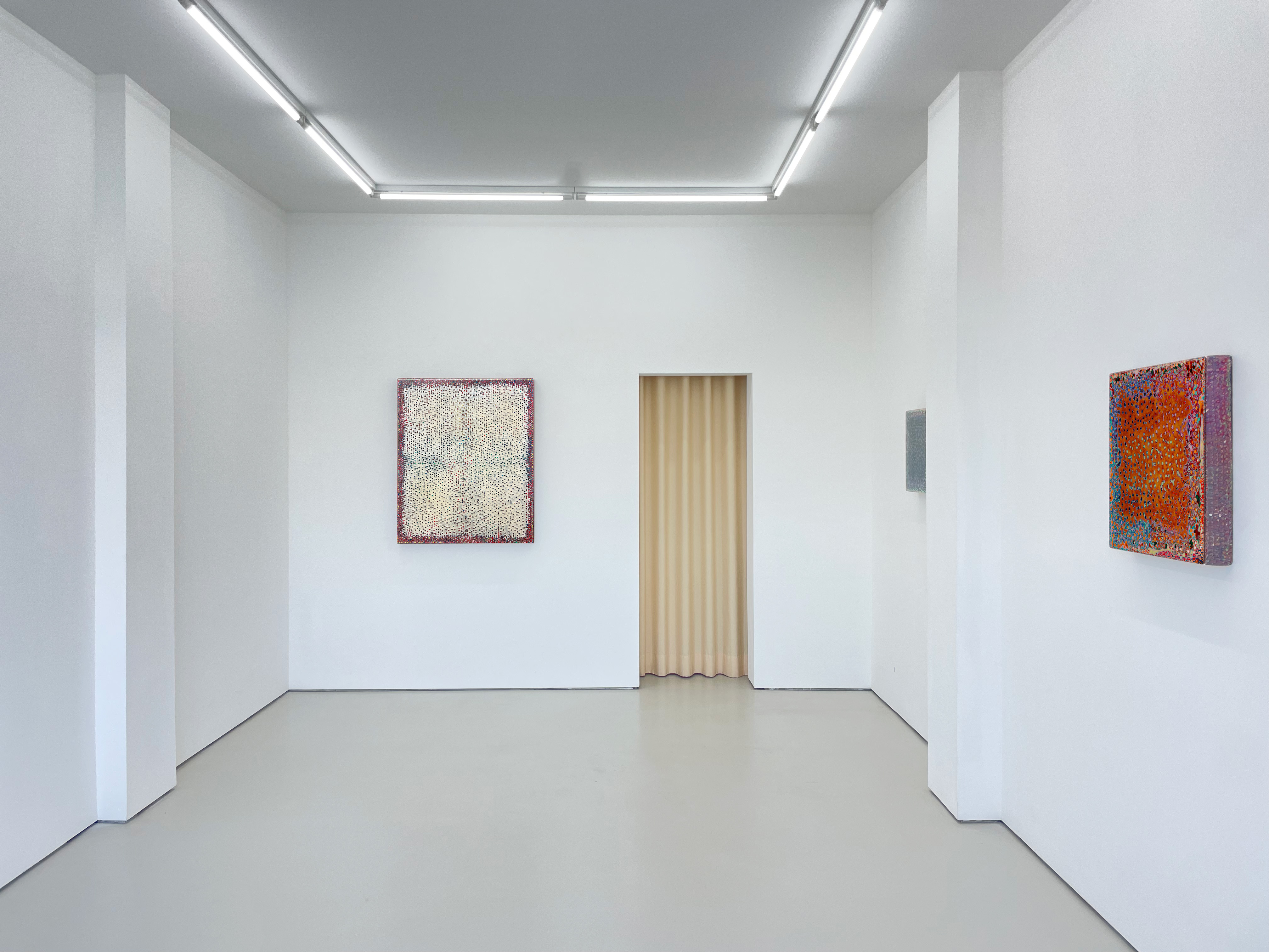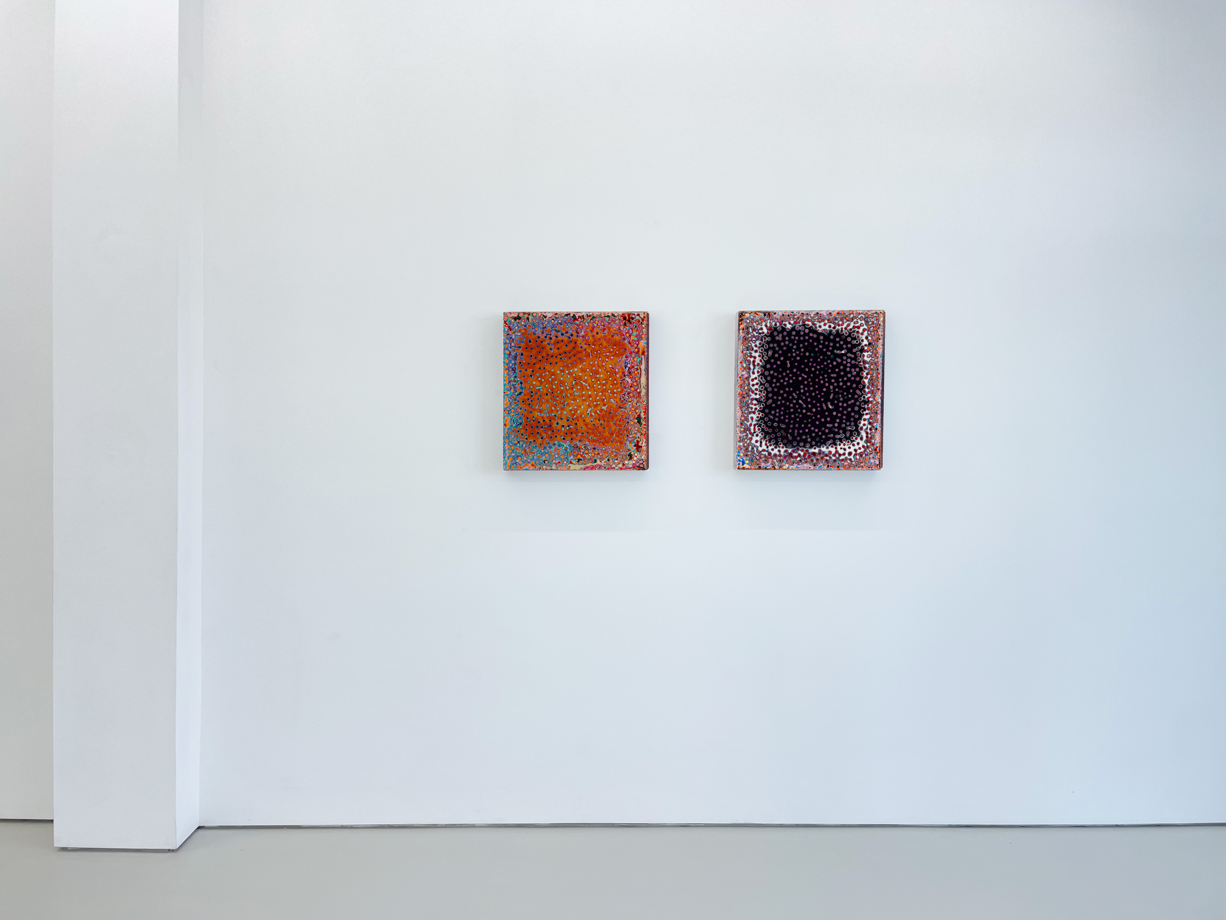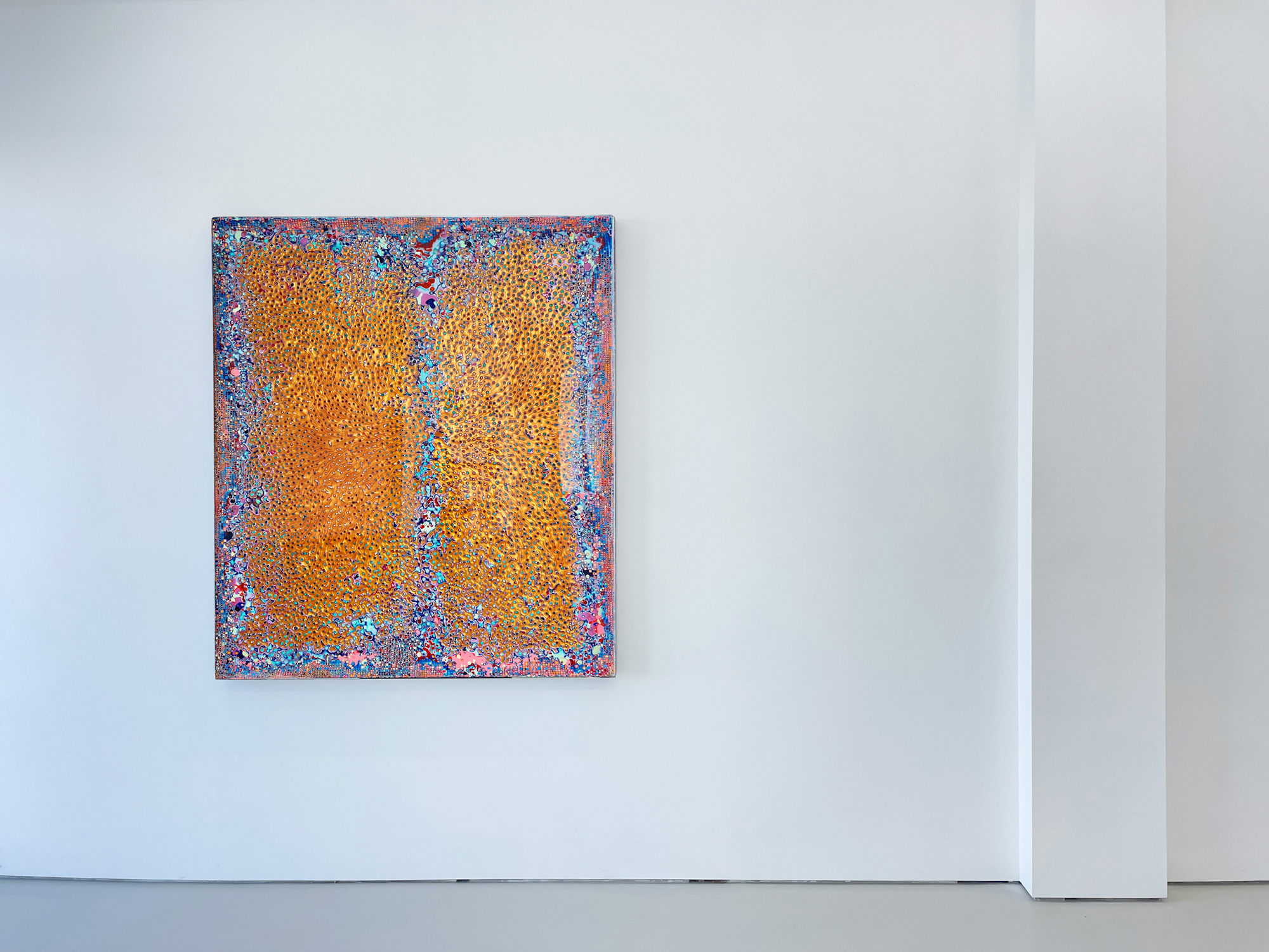 a perdersi. Non a caso, Pan si definisce scultore. I suoi “quadri” sono oggetti, entità che modificano lo spazio che li accoglie, instaurando con esso un rapporto magnetico. Pur restando opere “a parete”, esse irradiano una presenza che condiziona l’ambiente circostante, richiedendo respiro, silenzio, attenzione. In un tempo veloce, Pan propone una percezione lenta, immersiva, quasi meditativa. La scelta di titoli alfanumerici – come CA 4,389 IE– evoca il linguaggio dei cataloghi stellari. È un gesto che sottolinea la distanza da ogni volontà descrittiva o narrativa. Le sue opere non sono illustrazioni del cosmo, ma creazioni di un atlante personale e visionario, in cui si sovrappongono microscopico e macroscopico, visibile e invisibile.