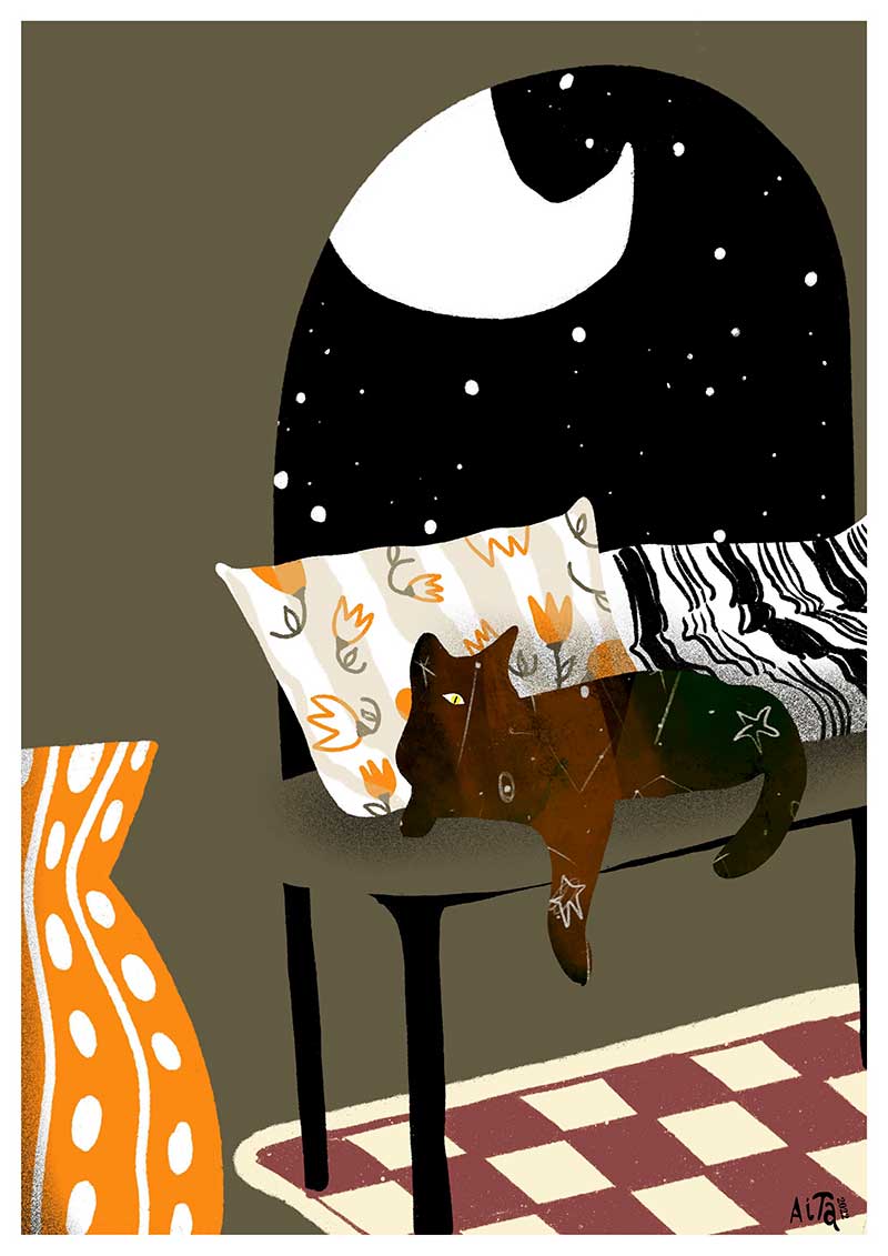 Roberta Aita è un’artista autodidatta con un background in Service and Communication Design presso il Politecnico di Milano. Si trasferisce a Berlino nel 2015 da Caserta, dopo aver vissuto a Milano e Shanghai, e comincia ad approcciarsi al disegno e all’illustrazione con l’obiettivo di raccontare storie e cercare la poesia nelle piccole cose della vita quotidiana. Con tempo e pratica, riesce a spostare le sue creazioni da piccoli pezzi di carta a fogli più grandi, fino ad arrivare alle tele e all’illustrazione digitale, sperimentando con nuove tecniche e colori accesi, mescolando forme geometriche ed astratte, textures piatte e materiche, il tutto per comunicare una realtà che si mischia al sogno, spezzettandola su vari piani di esistenza, cercando la connessione tra mondo interno ed universo, senza tralasciare messaggi di inclusione, appartenenza ed uguaglianza, concentrandosi soprattutto sulle tematiche del body positive e della figura femminile. L’artista ha un approccio molto curioso alla pratica artistica, provando nuovi media e mezzi di comunicazione come scrittura di poesia, racconti brevi e testi teatrali. Tramite l’arte, Roberta ha trovato il modo di concentrarsi su una cosa alla volta, lasciando andare paura e ansia.