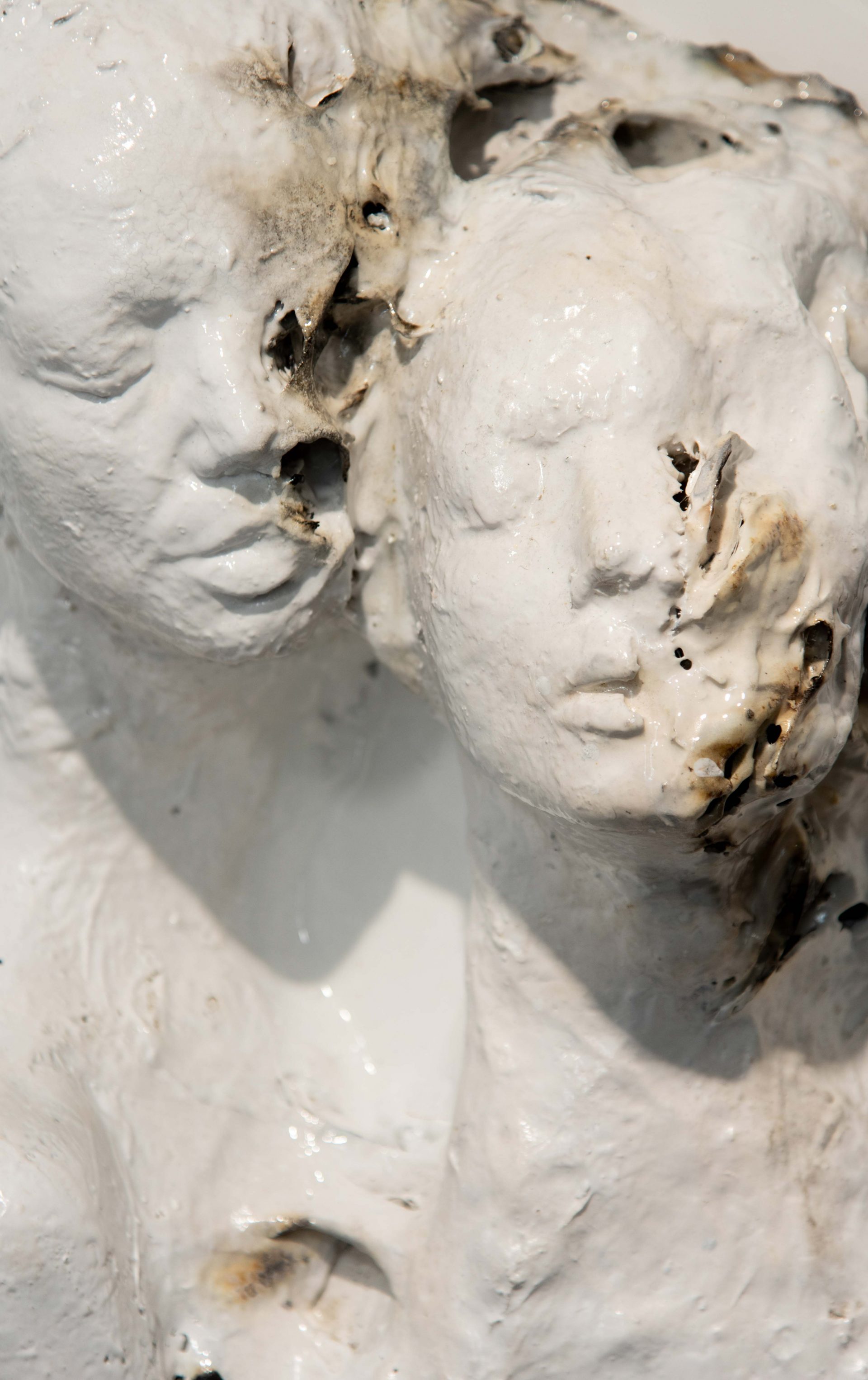 La mostra si potrà visitare fisicamente solamente su appuntamento. La curatrice della mostra, Velia Littera, nonché direttrice di Pavart, afferma che vuole continuare a crederci perché l’arte, da sempre, ha curato l’anima e in un momento di lutto mondiale c’è bisogno di un’espressione artistica che lasci un segno indelebile nel nostro cuore. Già dal titolo della mostra SKIN_20, si percepisce aria di cambiamento, è cambiata la vita infatti, e non si sa cosa succederà in futuro. Questo è anche il titolo attribuito ad una scultura realizzata dall’artista che verrà presentata in anteprima in occasione di questa mostra, un’opera che raffigura una figura femminile a tre teste. Non a caso l’artista Roberta Morzetti ha utilizzato la simbologia del numero “3”, che simboleggia la creatività come sviluppo dell’intelletto ed espressione di grande forza energetica. Con le sue nuove sculture, l’artista anch’essa inizia una nuova vita e, attraverso il suo segno artistico, percepiamo un’idea, un pensiero, un’emozione. La Morzetti cambia pelle, quindi, si proietta verso una nuova dimensione. Le 12 sculture in mostra sono testimonianza di una maturità artistica raggiunta nel corso degli ultimi due anni, nel corso dei quali l’artista ha vissuto momenti di grande dolore ma, con tenacia, è stata capace di trasformarlo in opere d’arte meravigliose capaci di scuotere l’animo dello spettatore. Tutto questo fa di questa giovane artista un vate, con il suo fardello di dolore e di ricordi e con il suo coraggio di mostrarli al mondo.