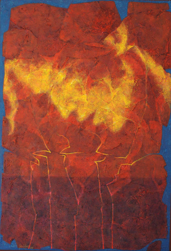 L’esposizione si compone di circa venti tele e tavole che vanno dai lavori sulla linea e la scrittura fino ai recenti volti di donna. Un percorso tra astratto e figurativo che affianca alle grandi tele materiche alcune delle piccole opere segniche recentemente esposte a Cascina Farsetti di Villa Doria Pamphilj a Roma.