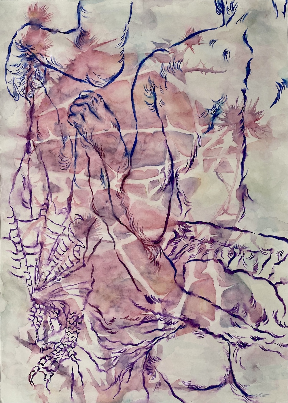 In occasione di questa sua personale l’artista presenta un corpus di opere inedite, per l’esattezza otto acquerelli e un intervento site specific applicato sulla finestra dello spazio.