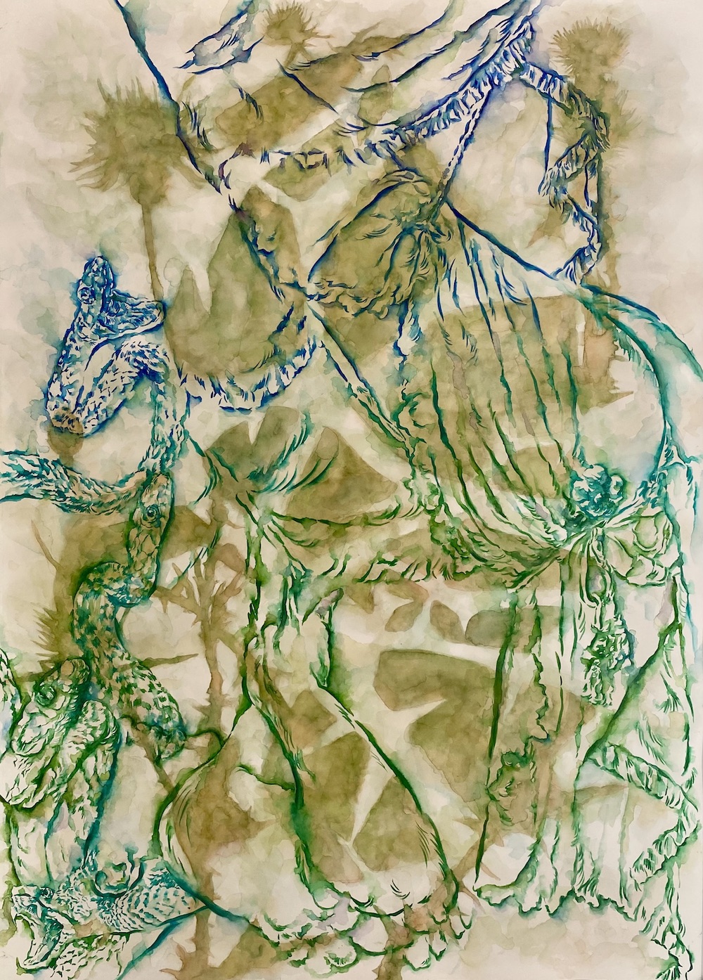 I soggetti e i dettagli di Amoroso sono creature “ctonie”, come le definirebbe Donna Haraway, che scrive di unicum contemporaneo e di ibridazioni naturali di genere e di esseri “al contempo antichi e appena nati (...) pieni di tentacoli, antenne, dita, cavi, code a frusta, zampe da ragno e chiome arruffate... (che) fanno e disfanno, vengono fatte e disfatte”. Amoroso attinge anche da qui, rapportando esperienze personali, autobiografiche, a un contesto urgente che va risolto. È fantascienza, ma è reale.