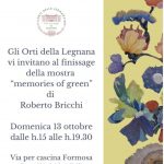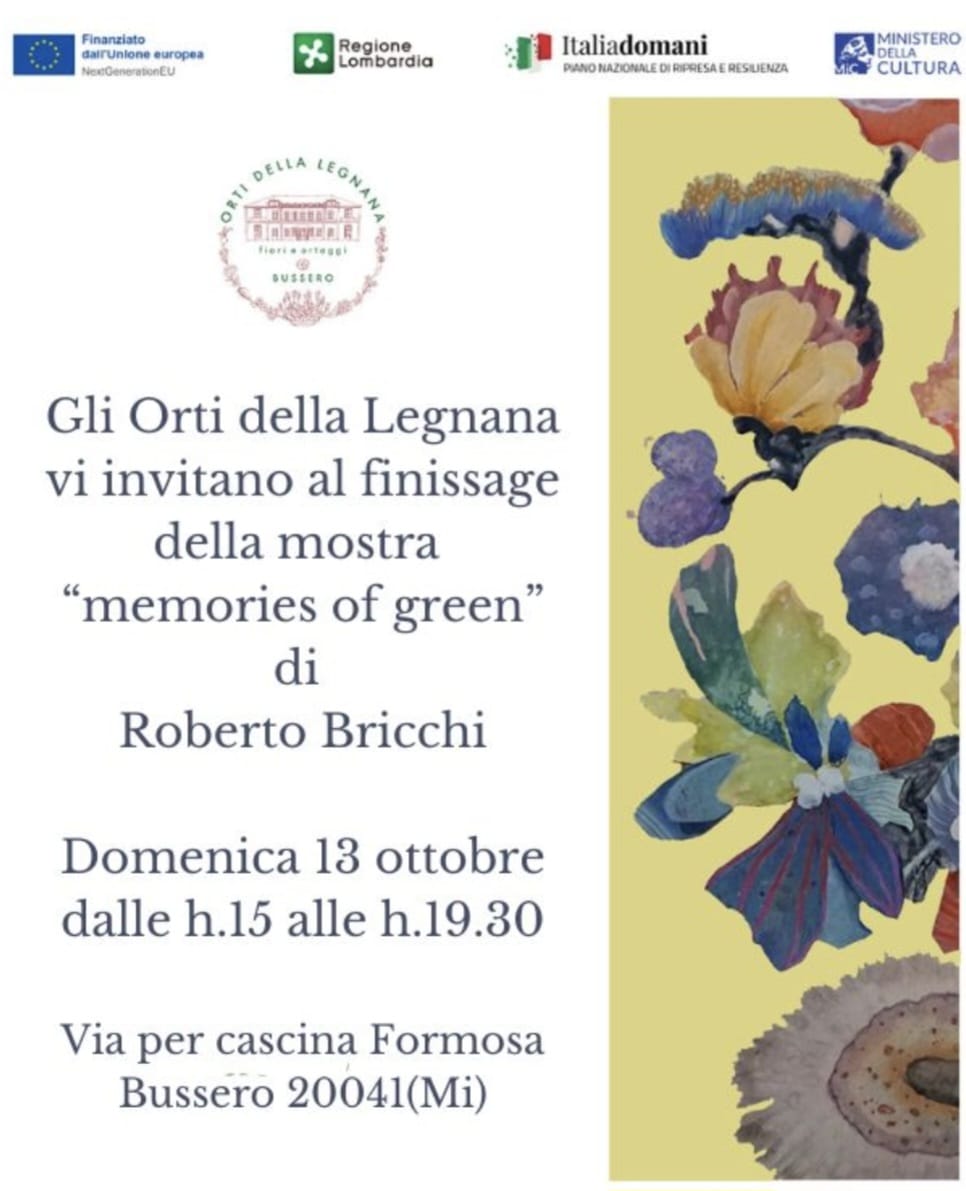La mostra ‘Memories of Green’ di Roberto Bricchi; una collezione di teli dipinti, piatti e sculture, termina sabato, 13 ottobre dalle 15-19.30h. Gli Orti della Legnana fanno da magica cornice per le opere colorate ed eleganti dell’artista con studio a Milano.