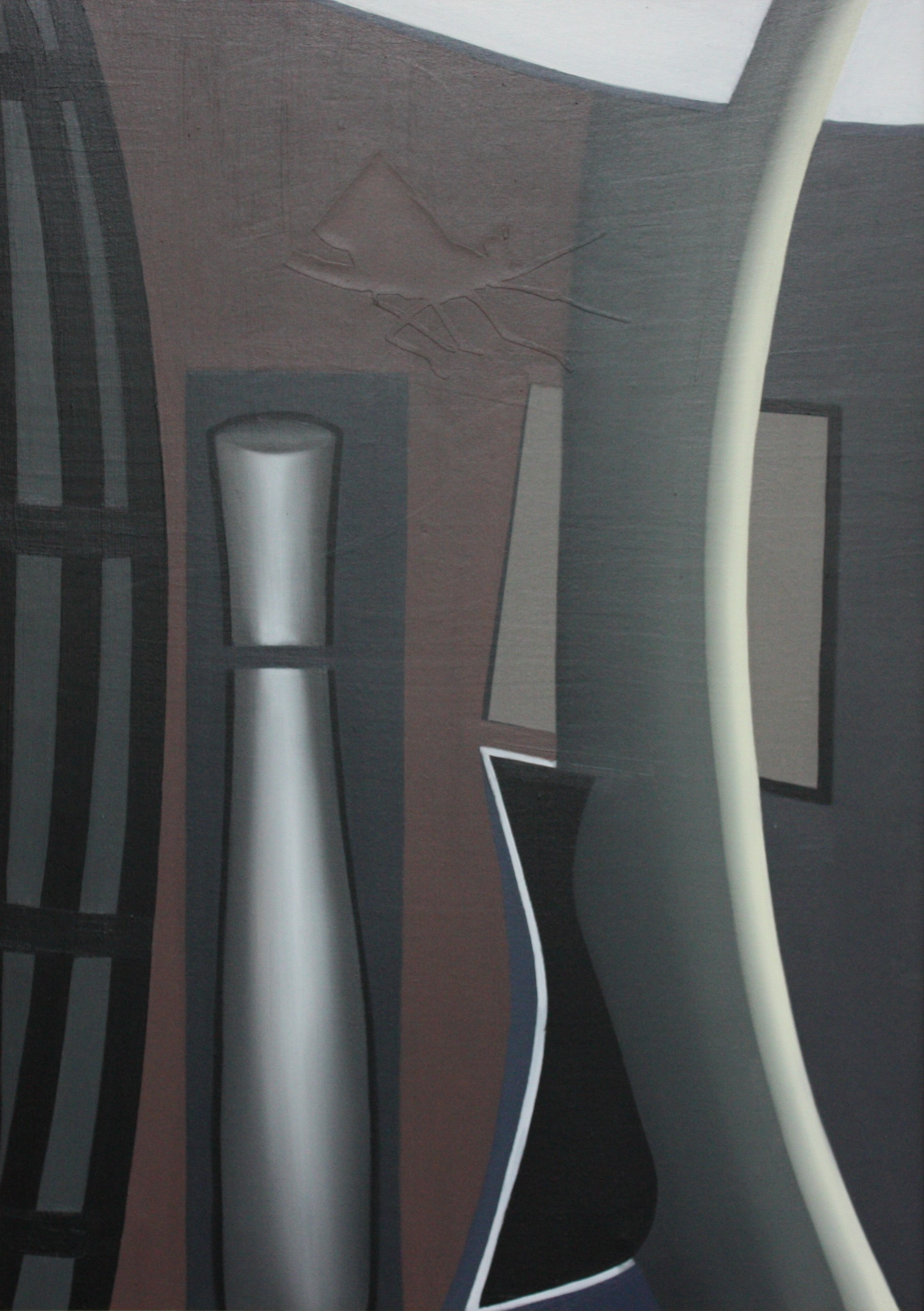 Simbolico riferimento agli elementi di una natura (dimenticata, eppure viva e presente) che l’artista ha sedimentato e nascosto nel pigmento di una di queste pitture, appiattita nel ton sur ton eppure percepibile da un leggero e significativo rilievo, pronta ad emergere come metaforica apparizione.