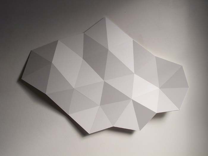 Ad un osservatore superficiale, le opere di Roberto Catucci potrebbero apparire come un disegno geometrico bidimensionale, costituito da forme poligone, chiare e scure, delimitate da lati spigolosi e taglienti. Ma dopo qualche istante, queste geometrie si riorganizzano alla vista, la particolare costruzione ottenuta con i legni, rivela superfici cariche di informazioni visive ambigue, ci si trova ad esplorare uno spazio tridimensionale, scandito da moduli allineati, che configura un sistema astratto e imprevedibile. In effetti il nostro sguardo è mosso da irrequietezza, l’azione dinamica suscitata dalla superficie ci dice della deliberata rottura di simmetria, dell’ambiguità percettiva che implica una frattura, uno scarto, una discontinuità e un capovolgimento delle nostre ripetitive certezze.