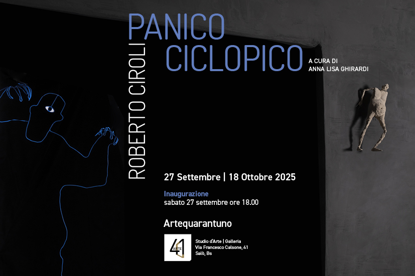 Sabato 27 settembre 2025, le porte di Artequarantuno a Salò, si apriranno per accogliere Panico Ciclopico, l’inedita mostra personale di Roberto Ciroli, a cura di Anna Lisa Ghirardi. 2 Installazioni site specific, indedite.