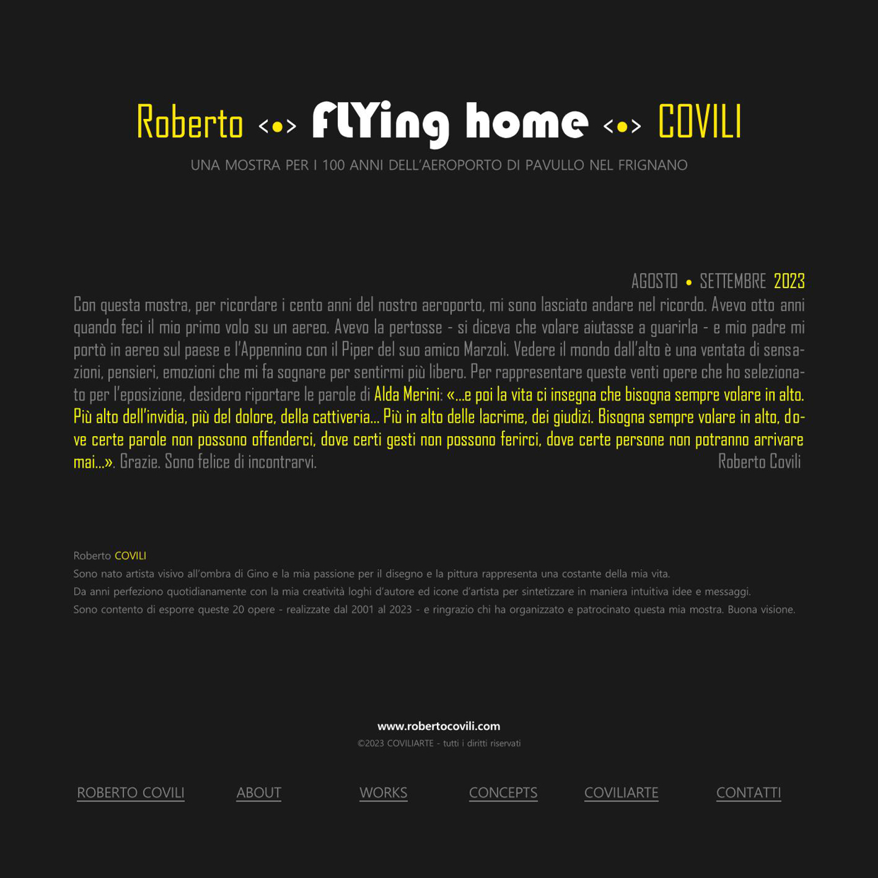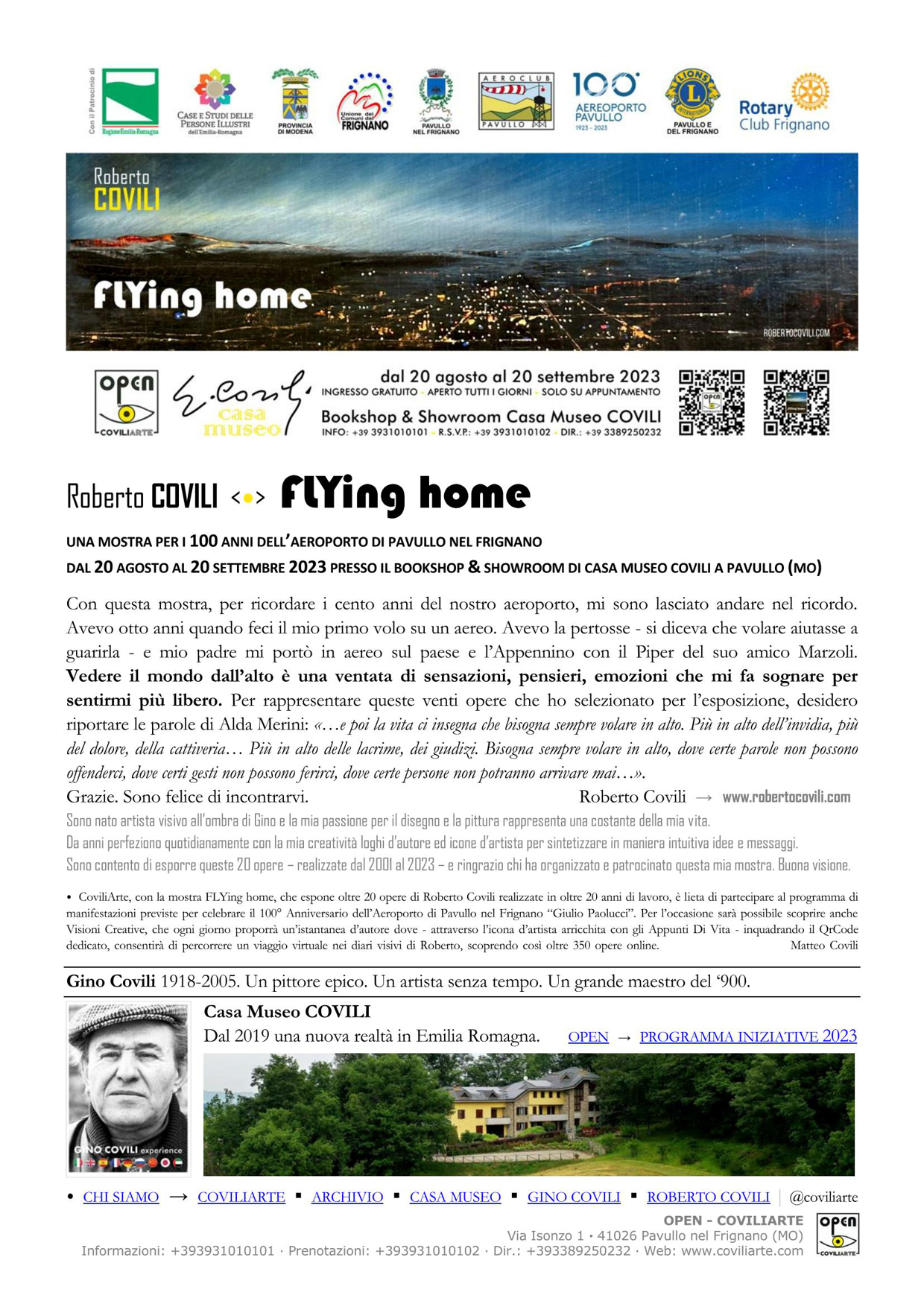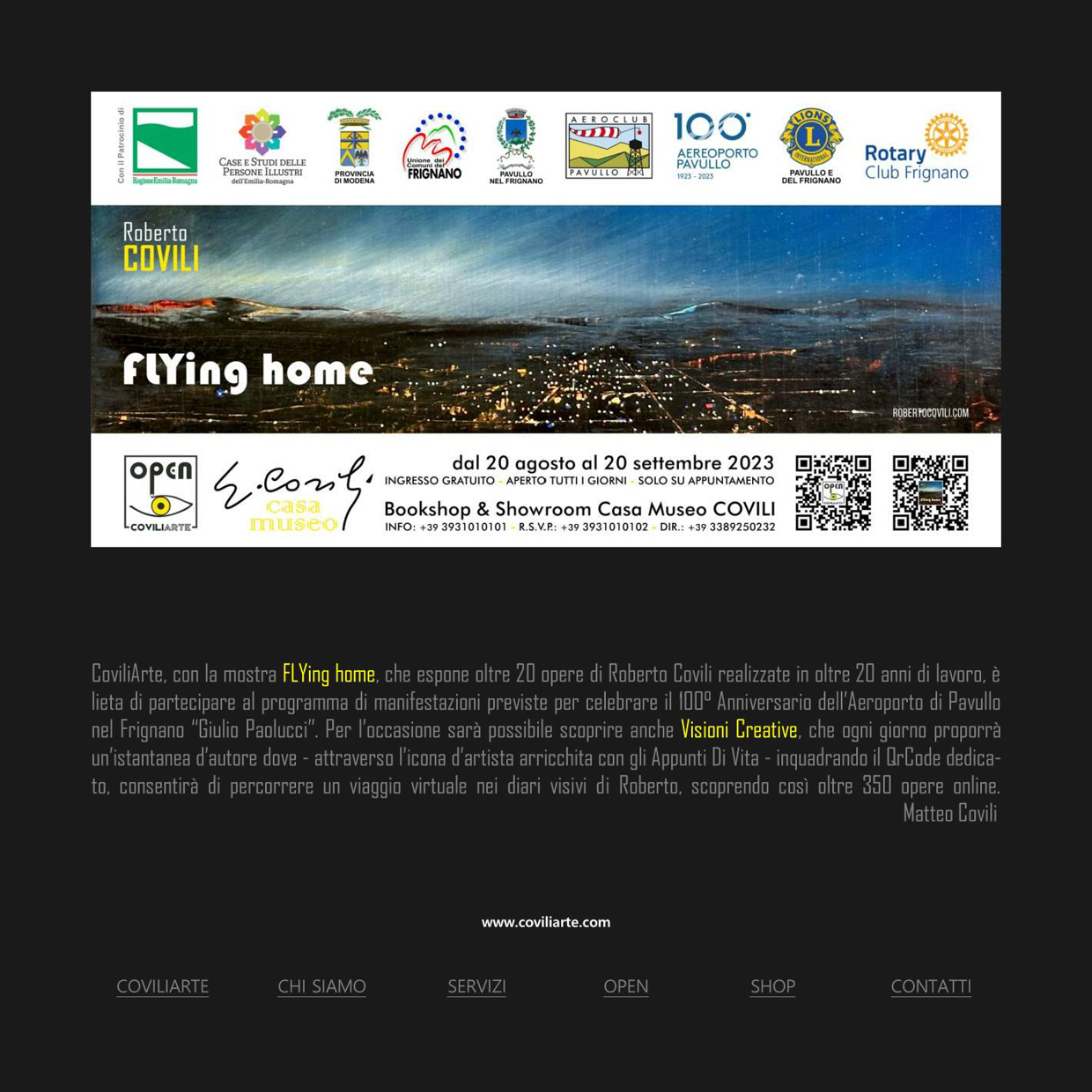 Oltre 20 opere di Roberto Covili realizzate in oltre 20 anni di lavoro e per l’occasione è possibile scoprire Visioni Creative percorrendo così un viaggio virtuale nei diari visivi dell’artista con oltre 350 opere online.