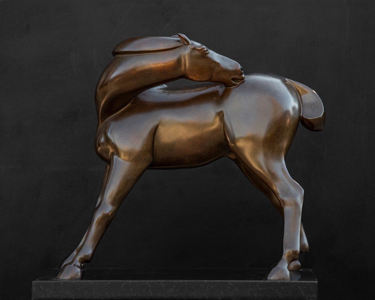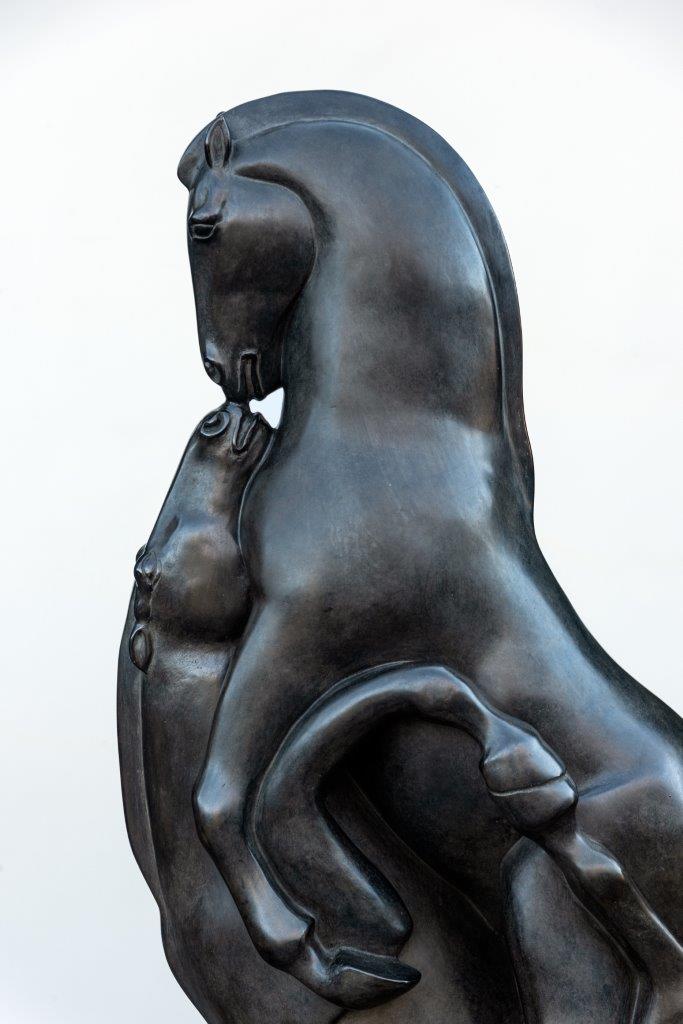 “Fiasella abbraccia idealmente le sue sculture, quasi le accarezza come ogni singolo soggetto, portandole nell’ambito del “non tempo”, caratterizzato da superfici lucidissime o scabrose, soluzioni alle quali arriva osservando la naturalezza di ciascun cavallo che “prende di mira”, che vuole eternare in una carezza ragionata fatta di amorevole gioia evitando superficialità e orpelli.