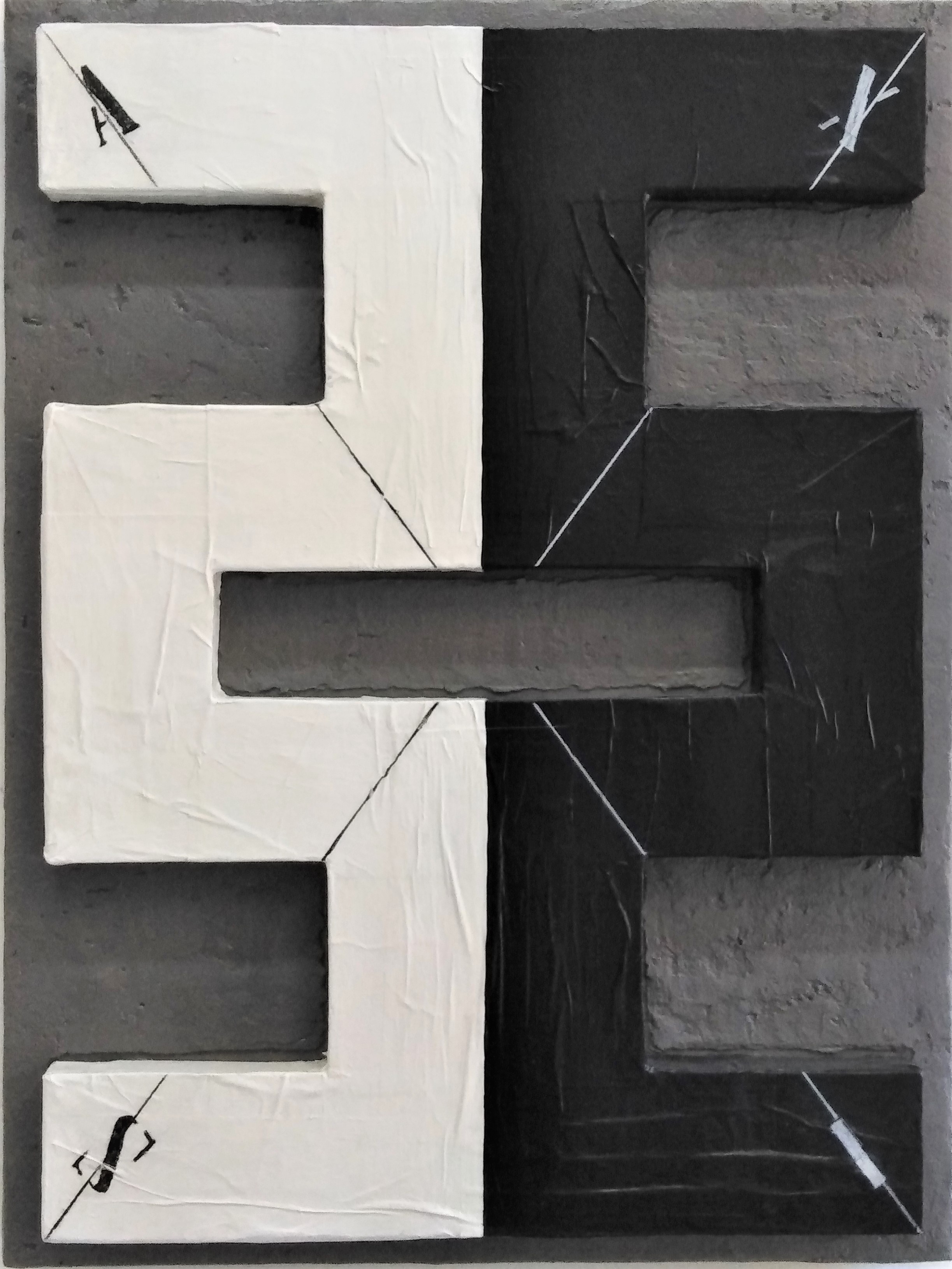 Solve et Coagula è un’azione che applica l’alchimia nella realtà odierna dando prova che il mondo circostante ci fornisce tutto ciò di cui noi abbiamo bisogno, ma per coglierlo pienamente è necessario un approccio di analisi scientifico unito all’arte di coagulare il tutto in un unico grande flusso vitale. Per questo, il percorso dell’artista stimola una ricerca introspettiva creando analogie e legami di forze antagoniste rappresentate attraverso il colore, ridotto quasi del tutto al bianco e al nero, e le parole scritte direttamente sulle opere.