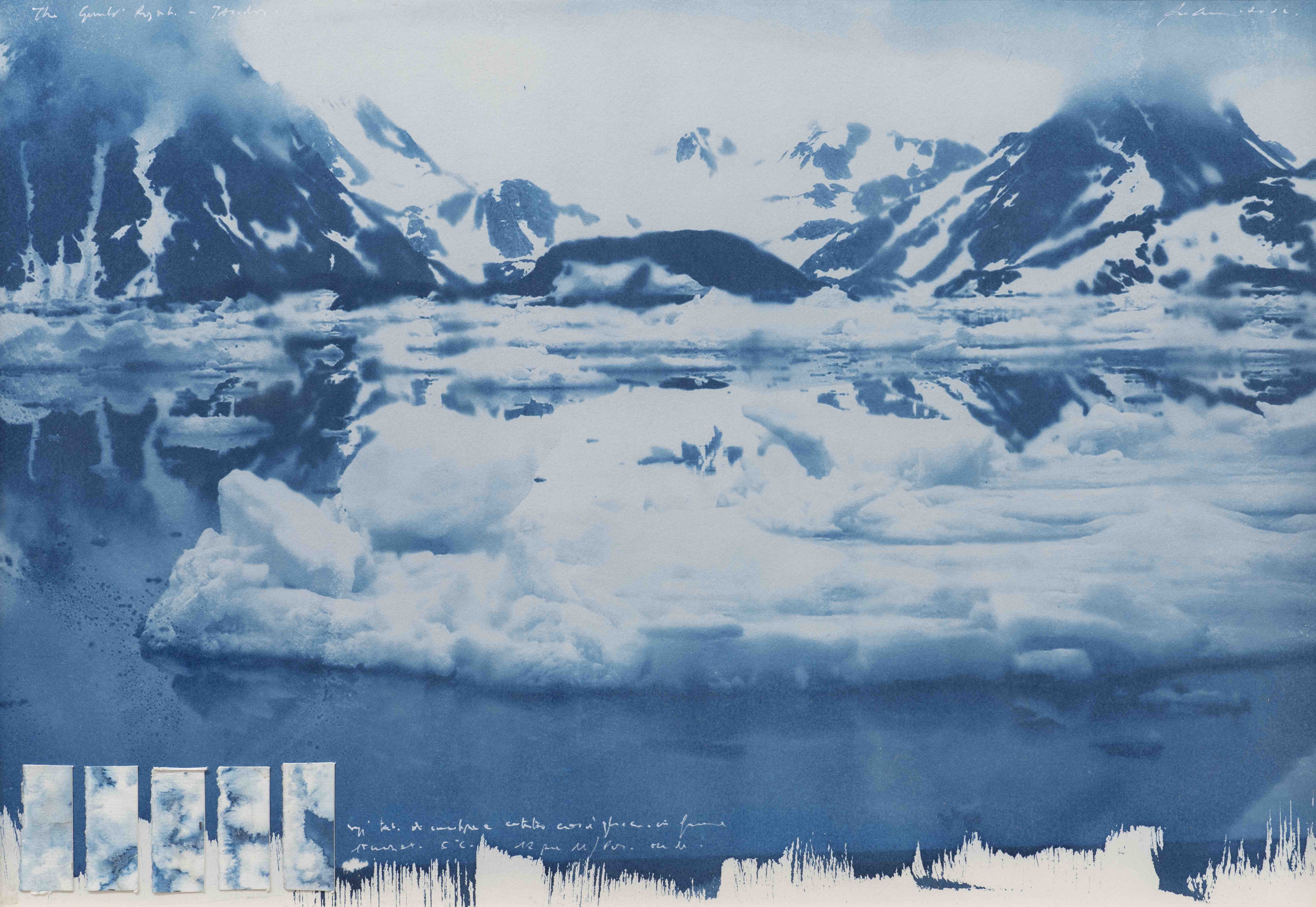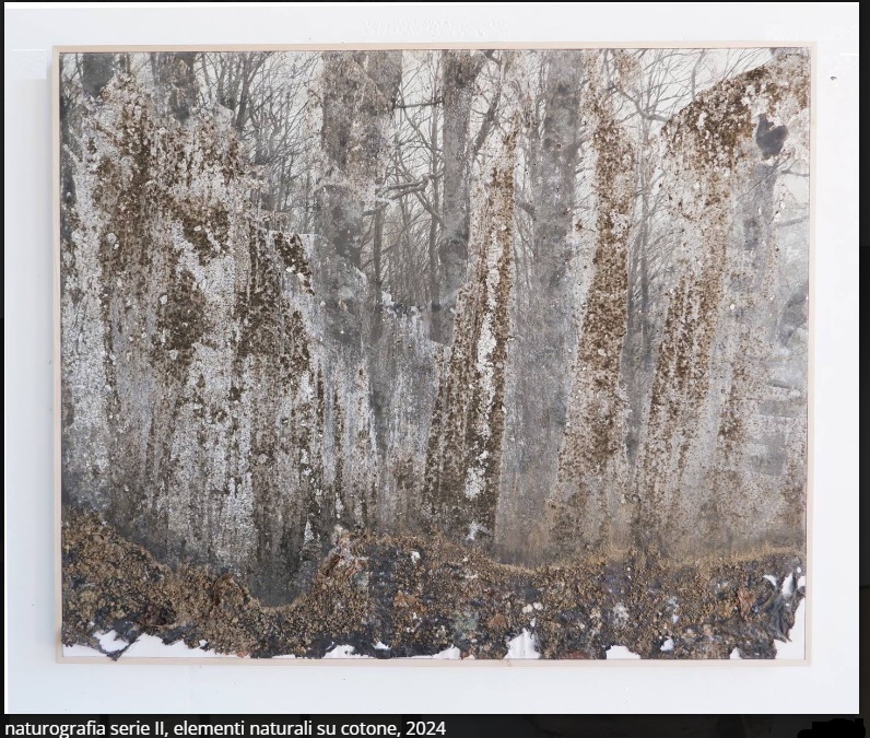 Ghezzi le chiama “Naturografie” per indicare che la “grafia”, l’elemento segnico contenuto nell’opera, è appannaggio della Natura in quanto i supporti quali le tele e le carte, opportunamente preparati e “iniziati” dall’artista, vengono poi immersi in elementi naturali quali acqua, ghiaccio o terreno ed ivi lasciati a “maturare” o meglio a trasformarsi attraverso gli agenti atmosferici, la pioggia, il sole, le maree, lo scioglimento dei ghiacci, altri elementi organici, la flora e la fauna presenti sul territorio che vengono “inglobati” tutti dentro l’opera. La Natura in tal modo è invitata a “dipingere” il supporto così come fa l’artista. Sì, perché alla fine l’opera compiuta è senz’altro una “pittura” iniziata dall’uomo e terminata dalla Natura in un connubio, una interrelazione e una intersezione tra i due che ha un che di magico e lirico al tempo stesso.