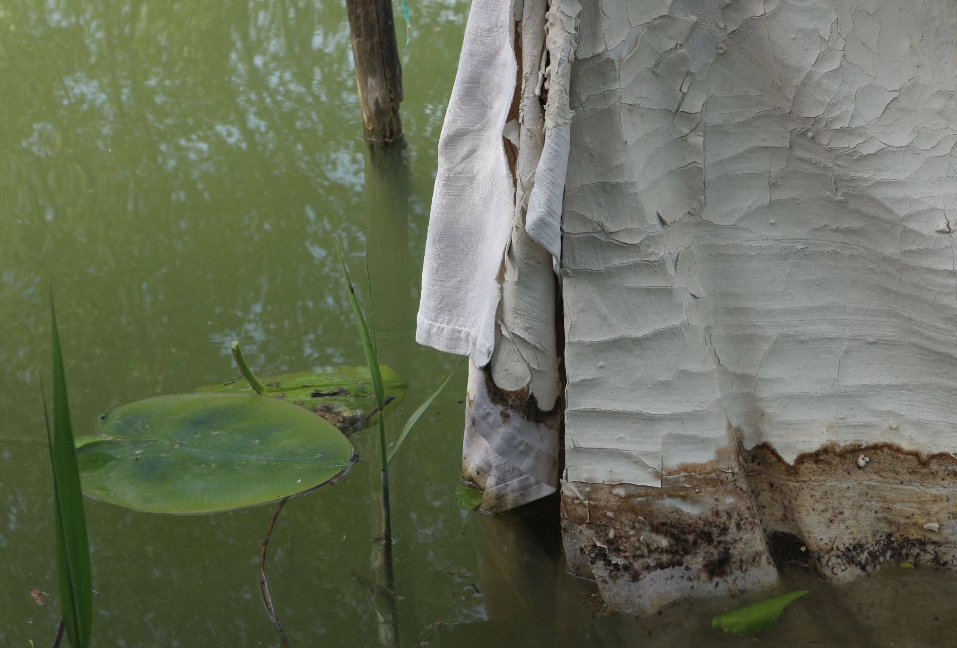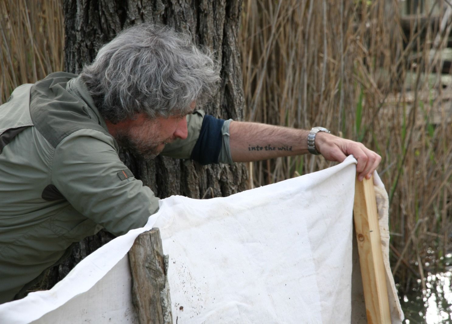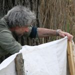 L’artista immerge le sue tele in differenti ambienti naturali e lascia che le condizioni atmosferiche, gli organismi viventi e le piante creino dei peculiari paesaggi astratti sul tessuto.