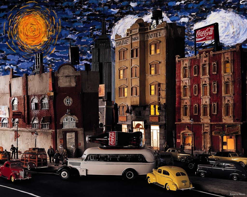 In mostra è esposta una serie d'immagini fotografiche che si rifanno a un universo verosimile ma mai vero come accade in Alien, un omaggio a Ridley Scott, dove la mano misteriosa di un alieno con quattro dita allungate raccoglie una fotocamera intesa come reperto archeologico. O ne Il trasporto impossibile dove un camion con la scritta DHL s'inerpica su una montagna misteriosa portando via addirittura un monumento neoclassico. In un'altra occasione, viene ricostruita una pompa di benzina americana degli anni Cinquanta creando un'atmosfera che ricorda un dipinto di Edward Hopper.