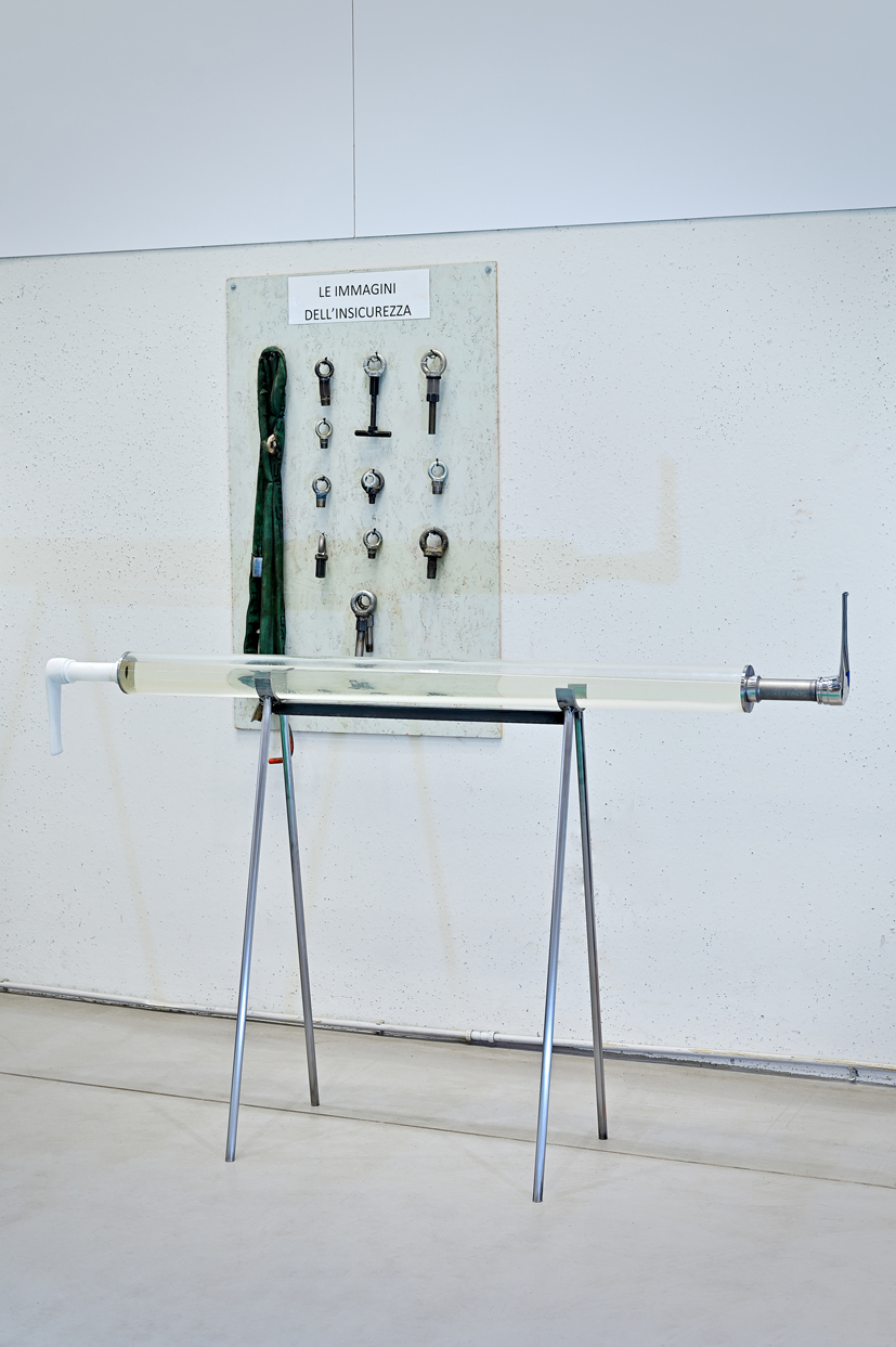 Pensata per funzionare all’ingresso dell’area produttiva dello stabilimento (zona KPI), la scultura tubolare di vetro soffiato, che ricorda gli strumenti utilizzati dagli geologi per il carotaggio, conterrà due dei pezzi proposti dall’azienda (pick-up tube) posti alle estremità, simili a delle ipotetiche valvole di apertura e chiusura. Il contenuto dell’opera si relazionerà con le cromie e le temperature presenti all’interno dello spazio espositivo, diventando un indicatore simbolico utile per riflettere sulle condizioni ambientali attuali e future. Uno strumento in grado di far pensare alla natura, alla climatologia e alla dinamicità a chi vive la quotidianità di un ambiente industriale chiuso.