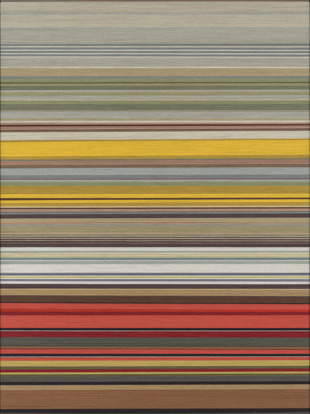 In riga, un colore dopo l’altro. Successioni di orizzonti cromatici in cui decantano opere note, anche notissime, riecheggiate, intraviste, familiari oppure impigliate nella nostra memoria, a tratti colta di sorpresa. Roberto Pietrosanti si serve dei fili per intessere un racconto ridotto a un solo essenziale elemento: una storia della pittura attraverso il colore. Non un percorso canonico, ma dettato dalle proprie personali corrispondenze. Un’indagine attraverso le creazioni di altri artisti, alla ricerca di un metalinguaggio universale e insieme esclusivo.