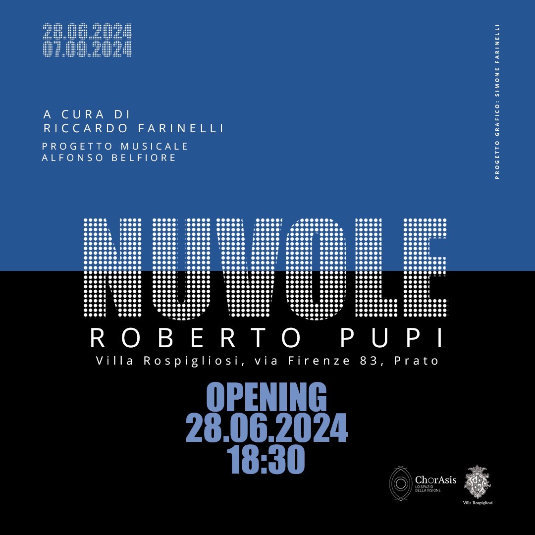 NUVOLE è il progetto espositivo che l’artista Roberto Pupi ha realizzato per ChorAsis – lo spazio della visione. Una restituzione site specific di opere che, accompagnate dalle musiche inedite di Alfonso Belfiore, si dipanano tra gli spazi della storica villa Rospigliosi di Prato, nel sottobosco, nel giardino monumentale, in alcuni ambienti della rimessa.