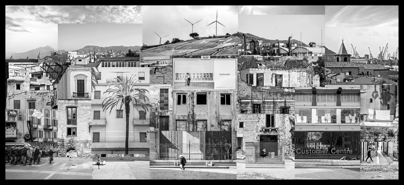 Il gusto retrò impiegato dall’uso del bianco/nero, dalle città abbandonate dove sacro e profano lottano ad armi impari, dona ai collages fotografici dell’artista palermitano il fascino del decadente.