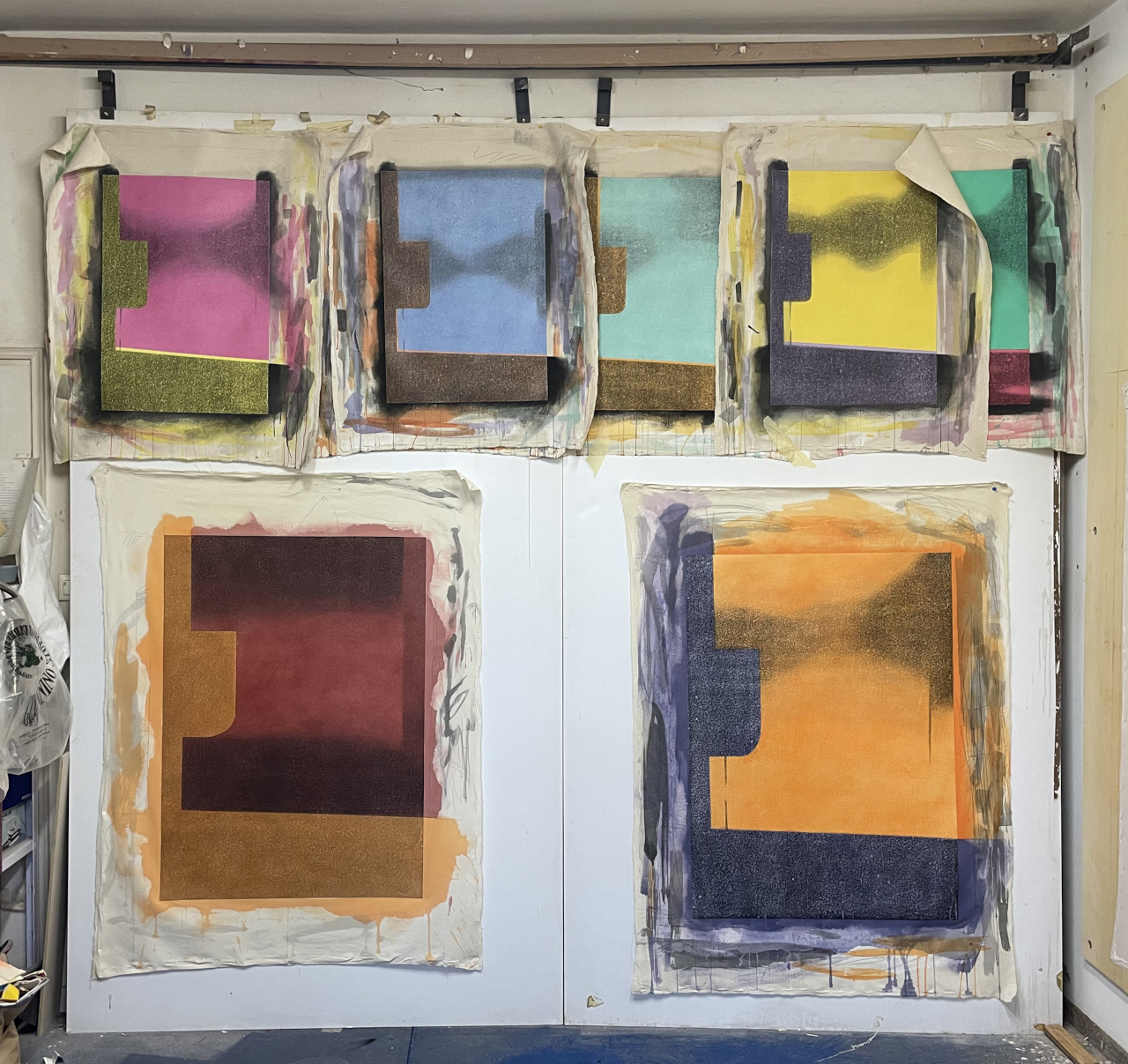 La personale site–specific di Roberto Rizzoli è concepita come un progetto pittorico unitario che, attraverso un’attenta impaginazione in parete di diverse tele libere, coinvolge completamente l’ambiente della galleria, e con questo si misura, fisicamente e percettivamente.
