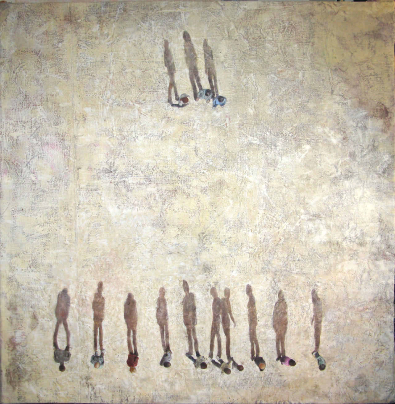Un lavoro concettuale in acrilico su grandi tele di lino che ha forza evocativa ed indaga le relazioni. Una ricerca relazionale ed emotiva, ed un indagine sull’individualità. L’osservatore sorpreso non riesce a decidere qual è il vero soggetto dei quadri: i personaggi o le loro ombre?