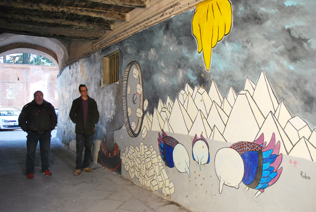 Un contesto sperimentale che ospiterà Robo (a.k.a. Roberto Alessandroni), cresciuto a contatto di realtà underground e indipendenti, che ne hanno influenzato lo stile. Robo sviluppa i suoi dipinti in una libera e spesso ironica reinterpretazione del contesto contemporaneo, con un occhio sempre aperto sull'attualità. Vive e lavora principalmente a Carrara dove collabora con una galleria e svariate situazioni indipendenti.