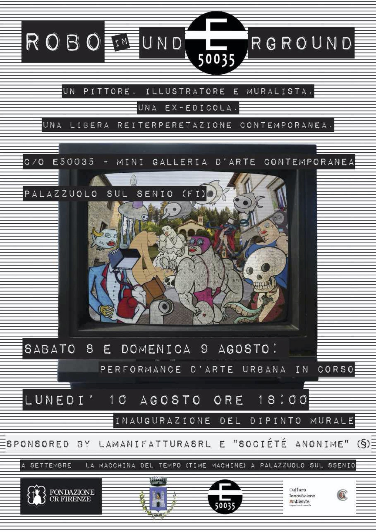 Robo, pittore, illustratore e muralista, interverrà con una libera interpretazione contemporanea su un bandone dell’ex-edicola, creando, sabato 8 e domenica 9 Agosto, una performance d’arte urbana che culminerà lunedì 10 agosto con l’inaugurazione del dipinto murale in un contesto tutto speciale.