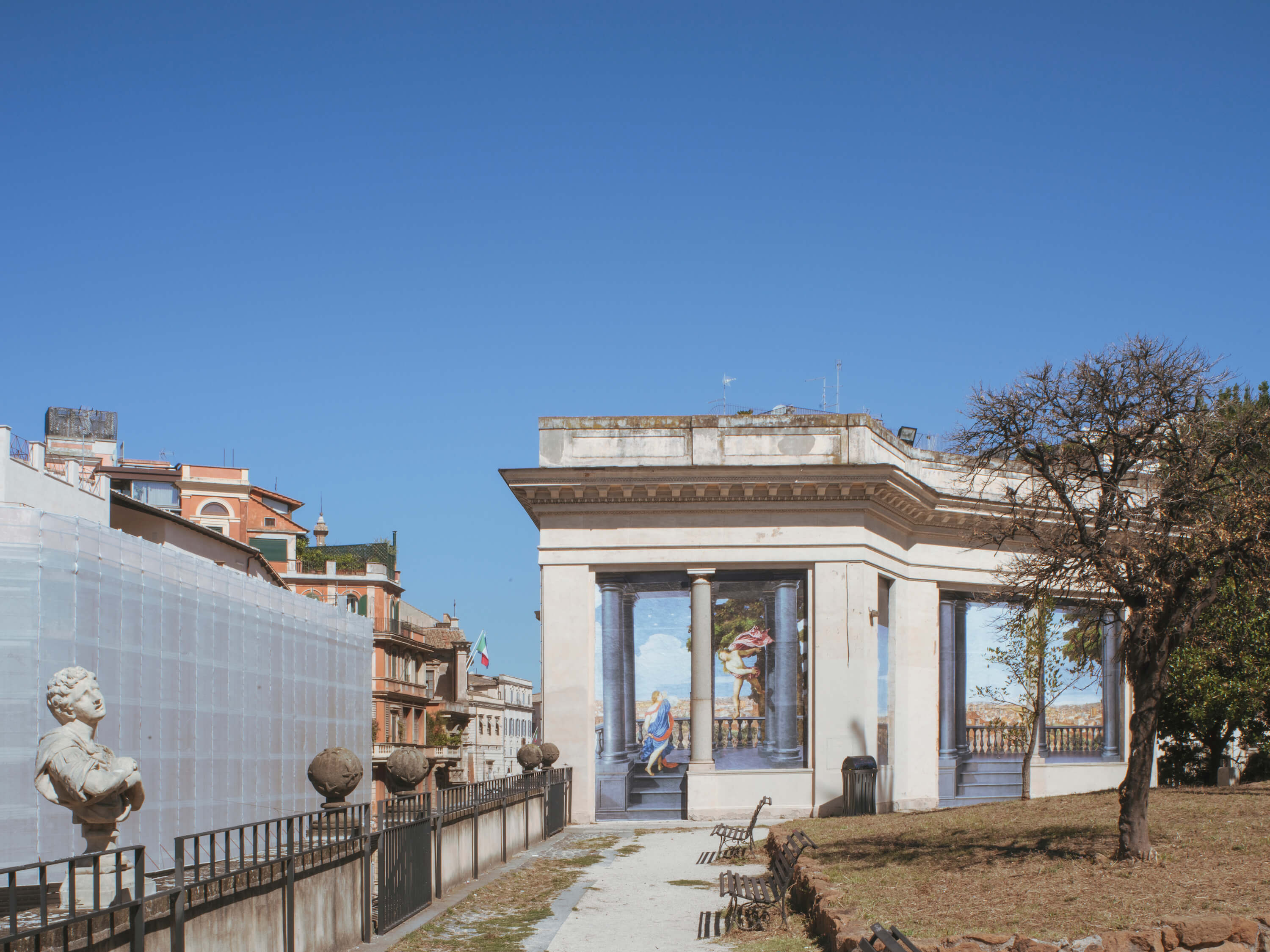 Promossa da Roma Capitale, Assessorato alla Crescita culturale – Sovrintendenza Capitolina ai Beni Culturali in collaborazione con il duo artistico ROBOCOOP, Loggia Aldobrandini è il titolo dell’installazione site specific ideata e realizzata dai due artisti e ospitata nel giardino superiore.
