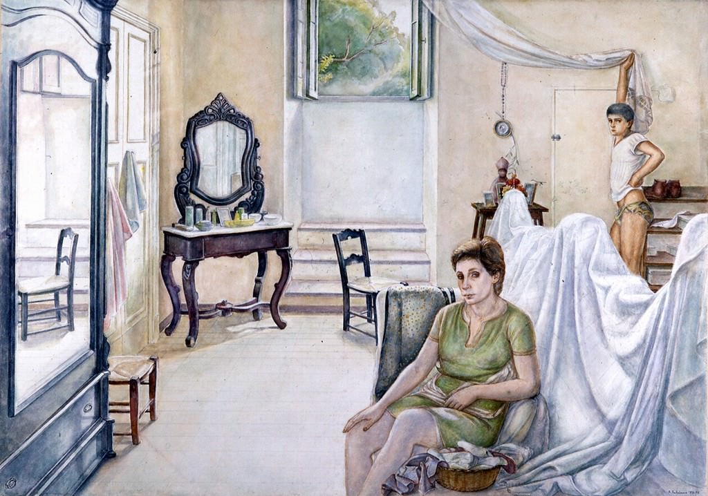I grandi acquerelli rappresentano interni, paesaggi e nature morte che denotano il dominio specifico di questo mezzo espressivo, suggestivo ma anche molto complesso.