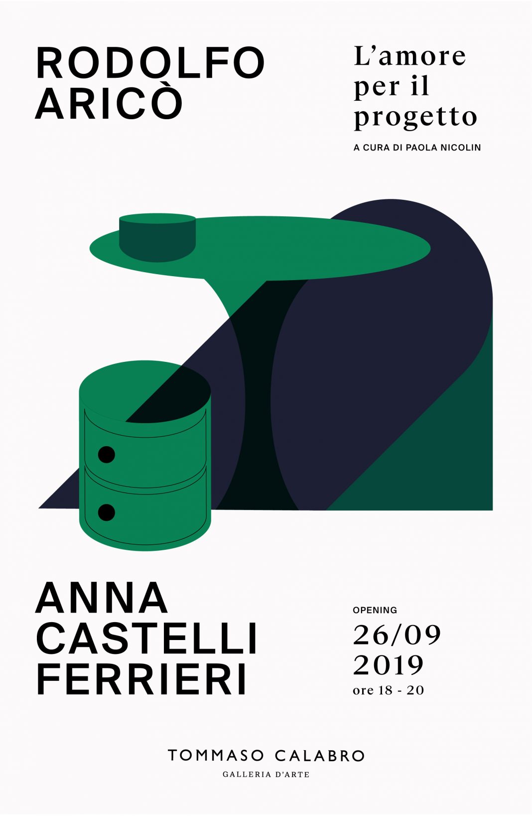 A un anno dalla sua apertura, la galleria d’arte Tommaso Calabro continua il suo programma espositivo con Rodolfo Aricò / Anna Castelli Ferrieri. L’amore per il progetto, una mostra che costruisce un dialogo tra due rilevanti figure dell’arte e dell’architettura italiani del Novecento: Rodolfo Aricò (Milano, 1930-2002) e Anna Castelli Ferrieri (Milano, 1918-2006). La mostra sarà visitabile dal 27 settembre al 23 novembre 2019.