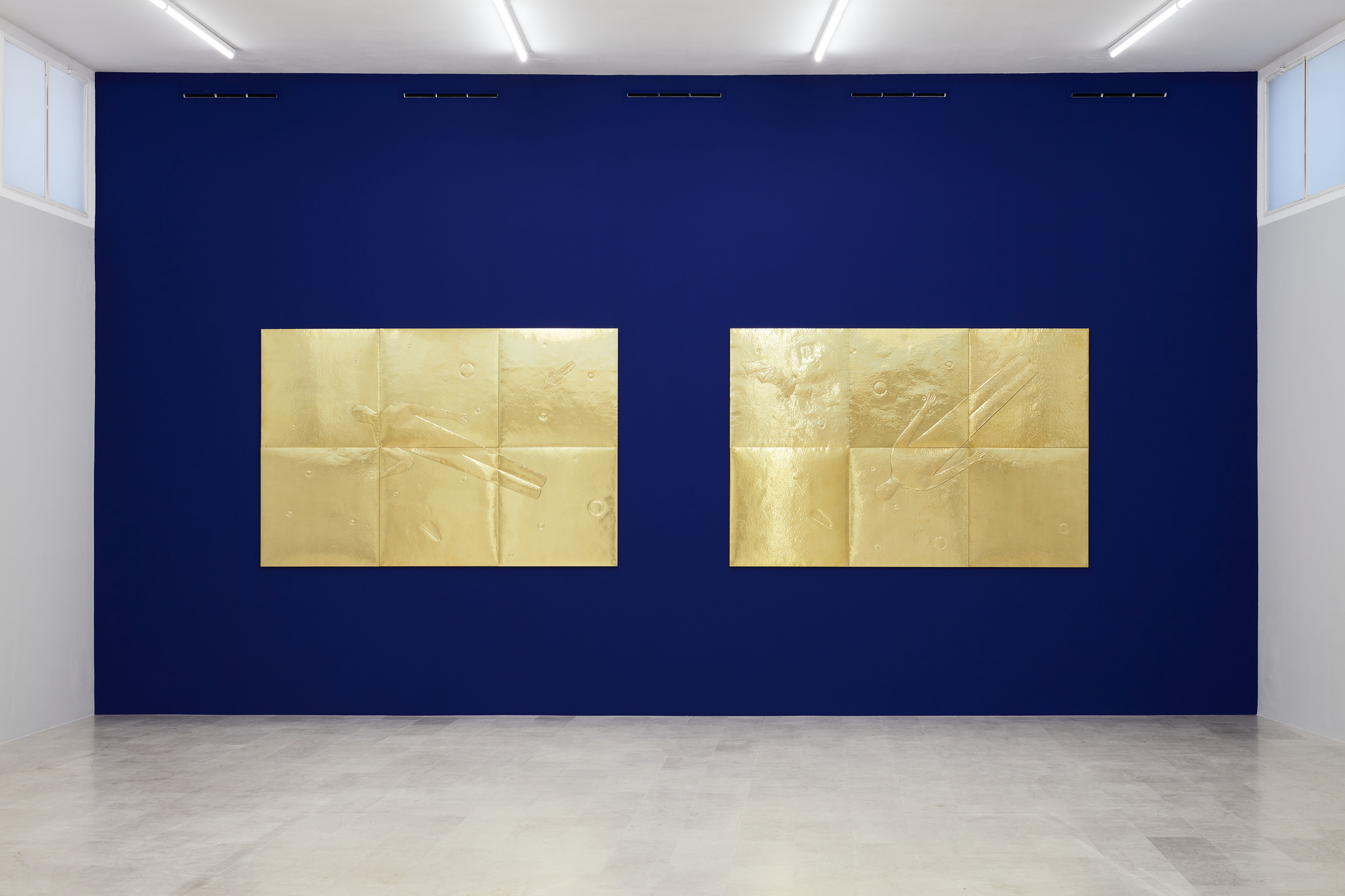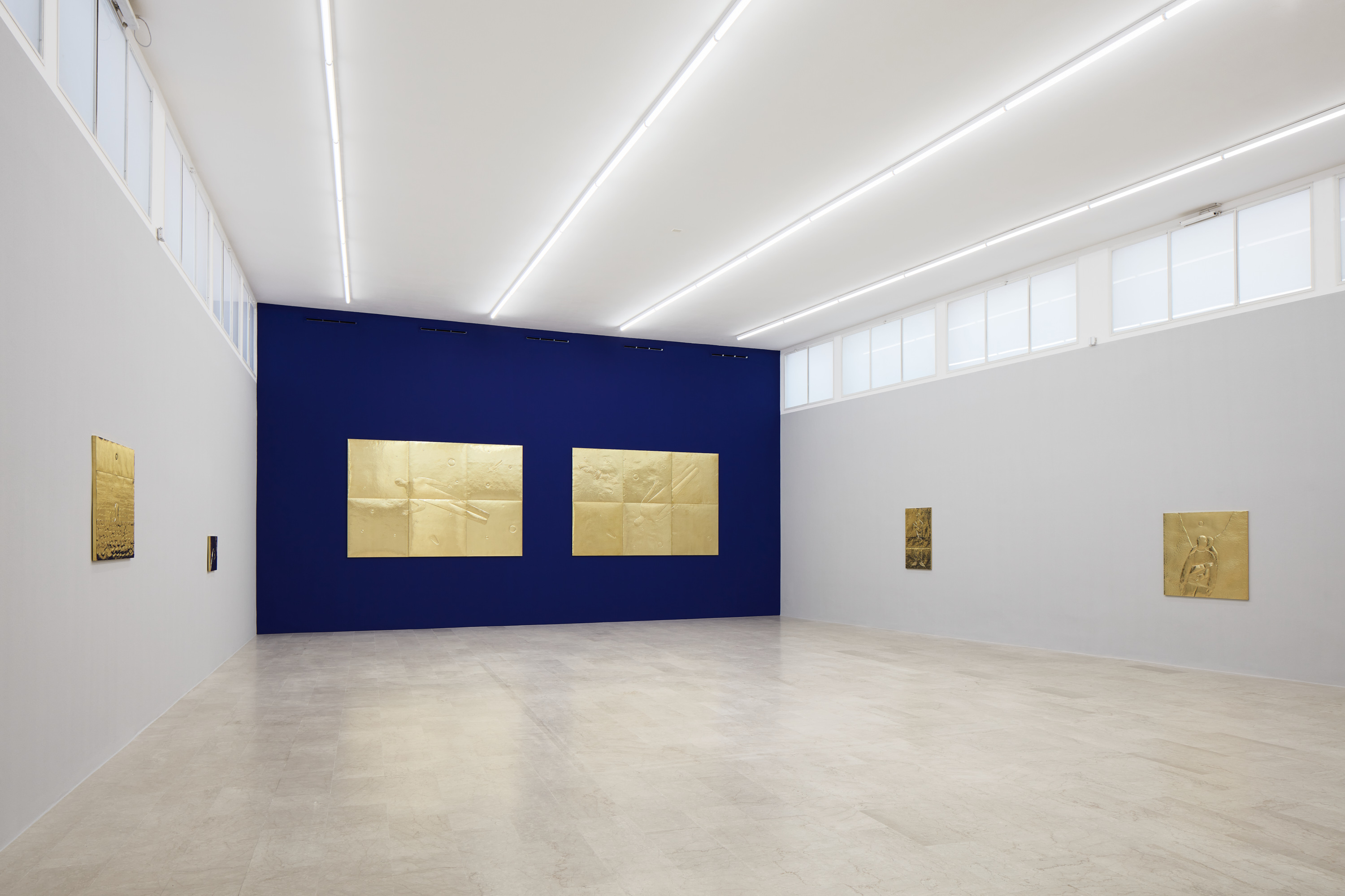 La seconda parte dell’esposizione è composta da un’installazione di grandi lavori realizzati in ottone martellato a mano, le cui figure e motivi sono tracciati con linee morbide, mentre il colore vibrante dell'ottone aggiunge luminosità e calore: il fondo dorato crea un’atmosfera devozionale che esalta ulteriormente l'intimità dei soggetti. Ne risulta un percorso narrativo che oscilla tra riferimenti ad un universo medievale e un’ambientazione onirica sospesa tra sogno e realtà.